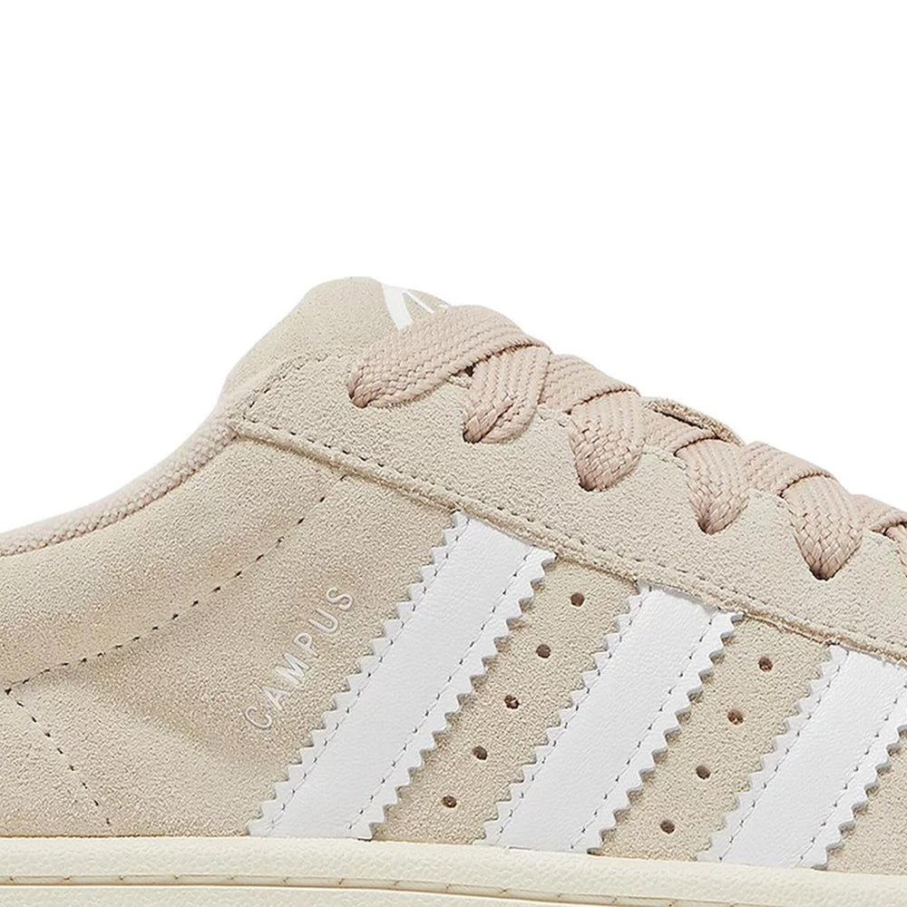 The Adidas Campus 00s 'Wonder White' features a clean "Wonder White" suede upper that exudes sophistication and versatility. The classic three-stripes branding on the sides is presented in a subtle, tonal finish, enhancing the minimalist design. A luxurious touch is added with premium leather accents on the heel tab and tongue, showcasing the brand's commitment to quality. The soft padded collar ensures comfort and support for all-day wear, making these sneakers not just stylish but functional. The rubber outsole offers excellent grip, making the Campus a reliable choice for both casual outings and active days. The overall design reflects a perfect blend of timeless elegance and modern flair, making it a must-have for any wardrobe.