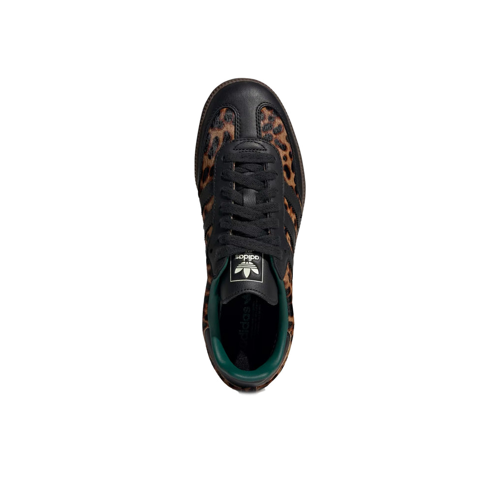 The adidas Samba OG 'Black Green Leopard' (2025) reimagines the classic Samba silhouette with a bold, animal-inspired aesthetic, blending traditional design elements with contemporary flair.