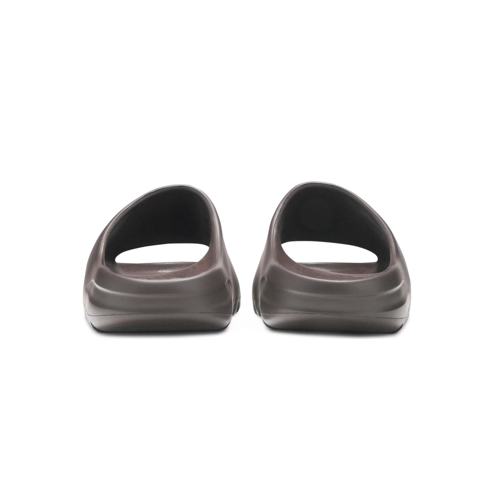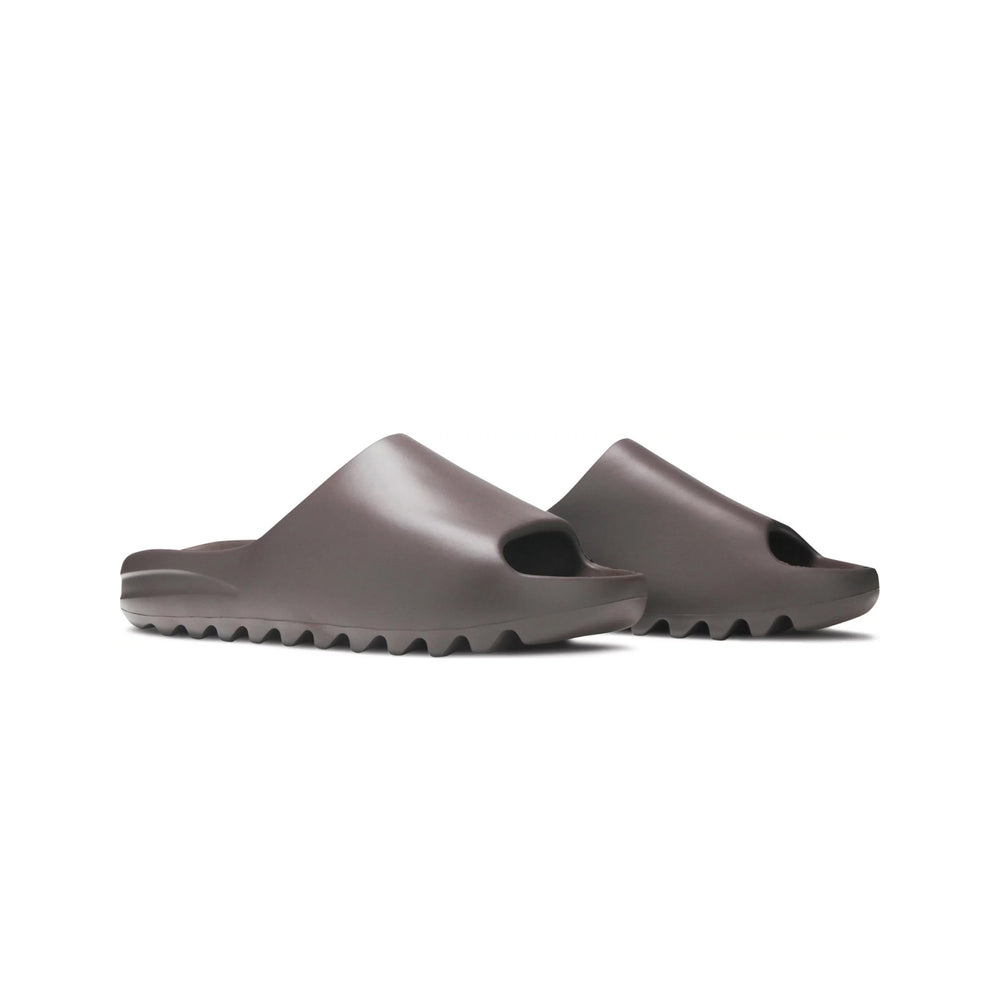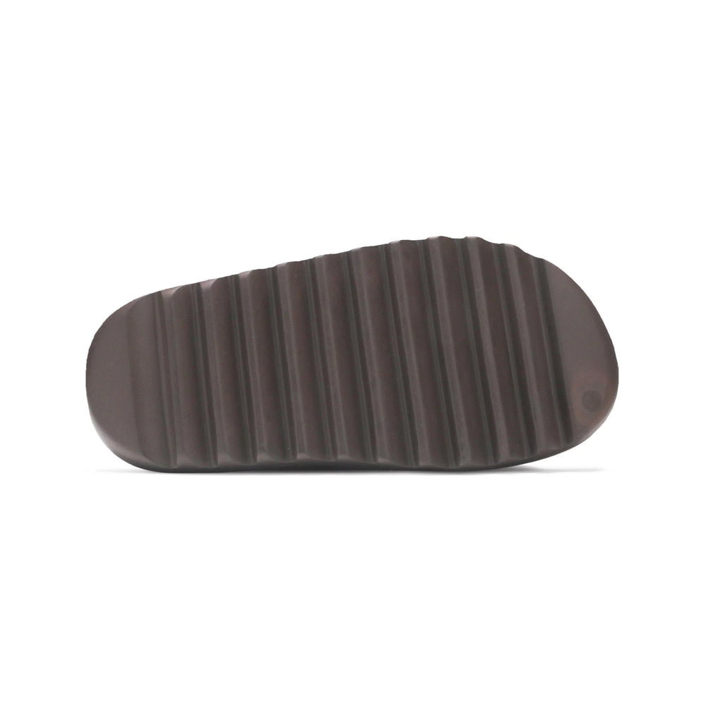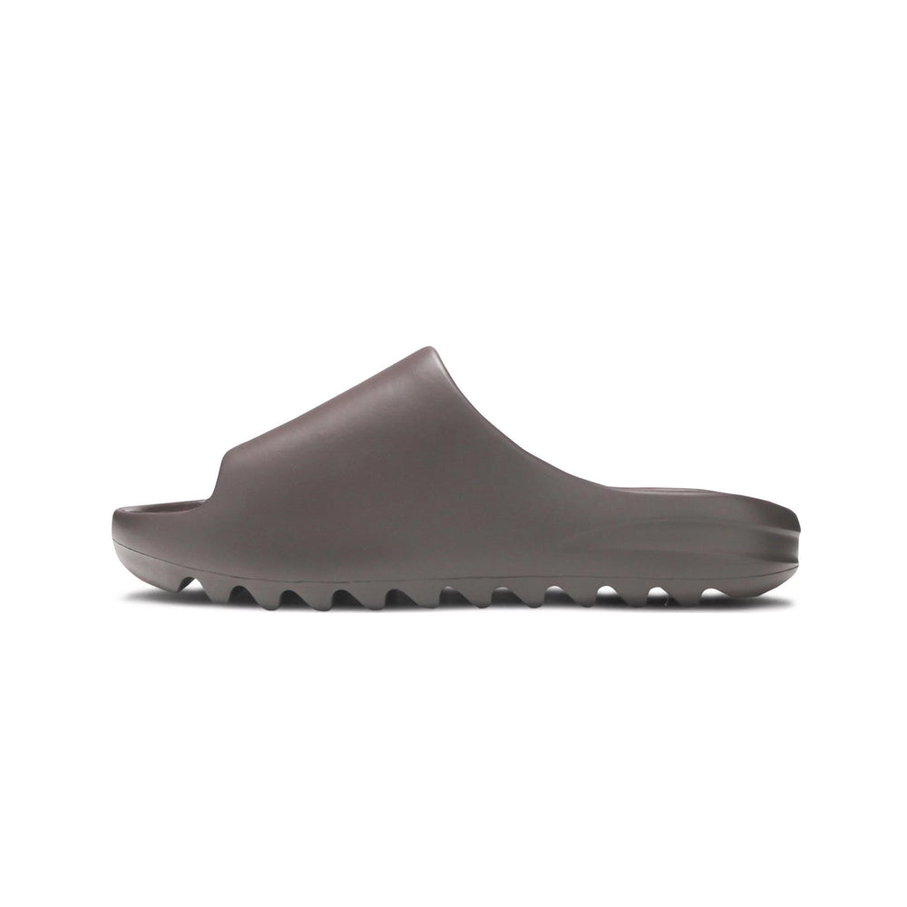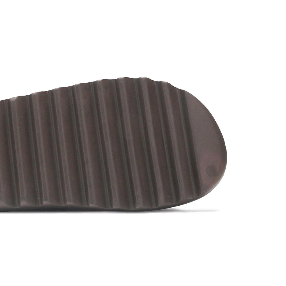 The Yeezy Slide 'Soot' is crafted from lightweight EVA foam, providing wearers with a balance of durability and cushioned comfort. Its one-piece construction is designed to cradle the foot, making it ideal for all-day wear. The slide’s treaded outsole features strategic grooves for enhanced traction, ensuring stability on various surfaces. This deep charcoal hue is part of Yeezy's signature palette that emphasizes neutral, adaptable shades, lending the slide a sleek and modern aesthetic. The Yeezy Slide 'Soot' quickly gained traction for its comfort-focused construction and versatile styling, securing its place as a staple in contemporary casual footwear.