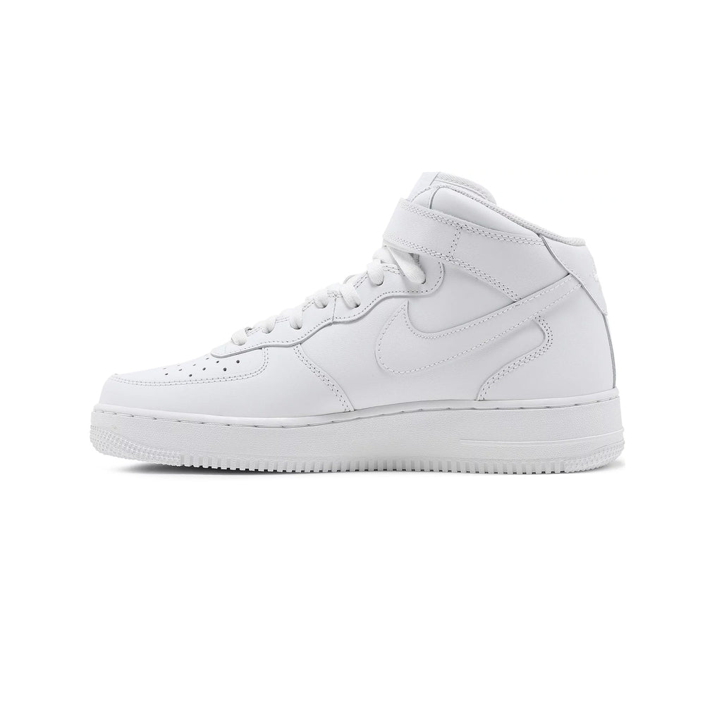 Fact-checked for authenticity, the 'Triple White' colorway encapsulates the essence of simplicity and versatility. Crafted with premium materials, the mid-top silhouette features a pristine white leather upper, a signature ankle strap, and the iconic Nike Swoosh, showcasing the meticulous craftsmanship that defines the Air Force 1 lineage.