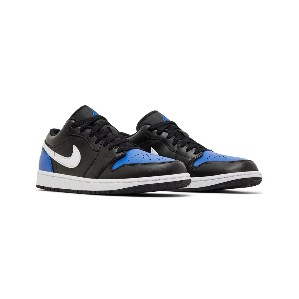 The Air Jordan 1 Low 'Black Royal Toe' merges classic elements of Michael Jordan’s signature line with an updated, sleek colorway that highlights the model's enduring appeal. As a part of the Air Jordan 1 lineage, this low-cut silhouette maintains its legacy while incorporating modern accents that emphasize comfort, style, and functionality. Featuring a clean combination of black, white, and royal blue, this colorway pays homage to the original Air Jordan 1 'Royal,' making it a must-have for both Jordan aficionados and casual sneaker enthusiasts alike.