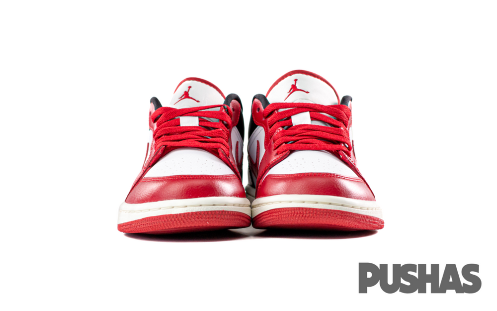 The colorways for the Air Jordan 1 Low Reverse Black Toe (W) include white, black, sail, and gym red.