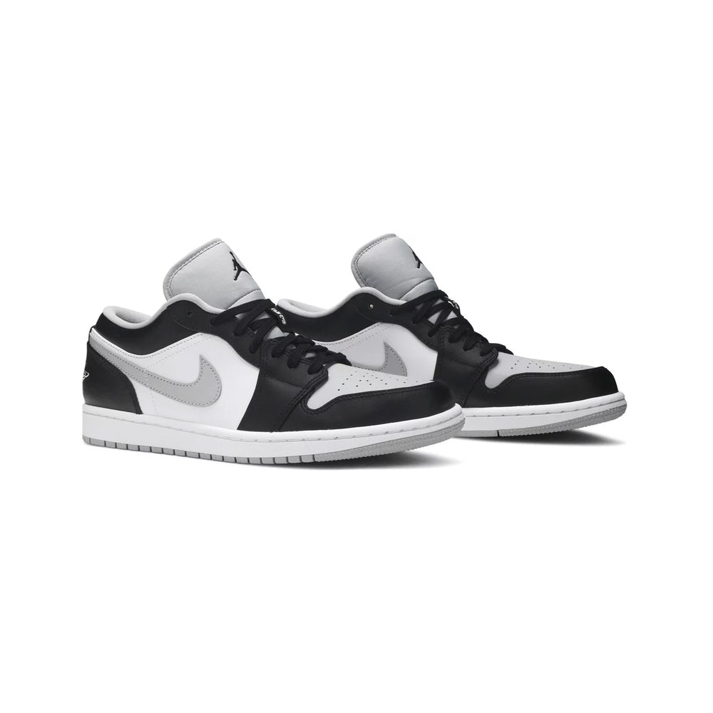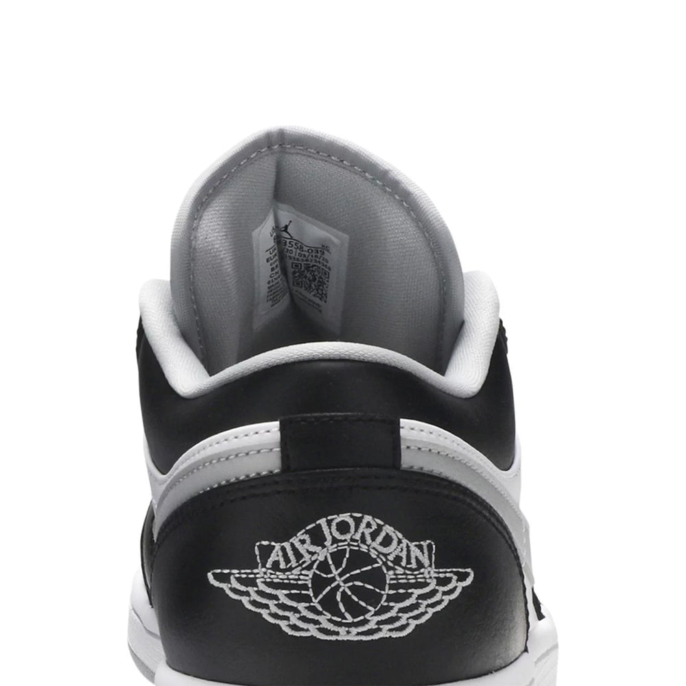 Crafted with a combination of black and "Shadow Grey" leather, the Air Jordan 1 Low 'Shadow' stays true to the legendary color blocking that defines the series. The sneaker features a black leather base accented by Shadow Grey overlays along the heel, Swoosh, and toe box, creating a balanced and clean aesthetic. The nylon tongue enhances breathability, while the cushioned midsole ensures comfort and support. Complementing the look, the Wings logo is debossed on the heel, and the Jumpman logo appears on the tongue for classic branding details. Finished with a rubber outsole for optimal traction, the Air Jordan 1 Low 'Shadow' is both stylish and functional, seamlessly fitting into a variety of casual and athletic looks.