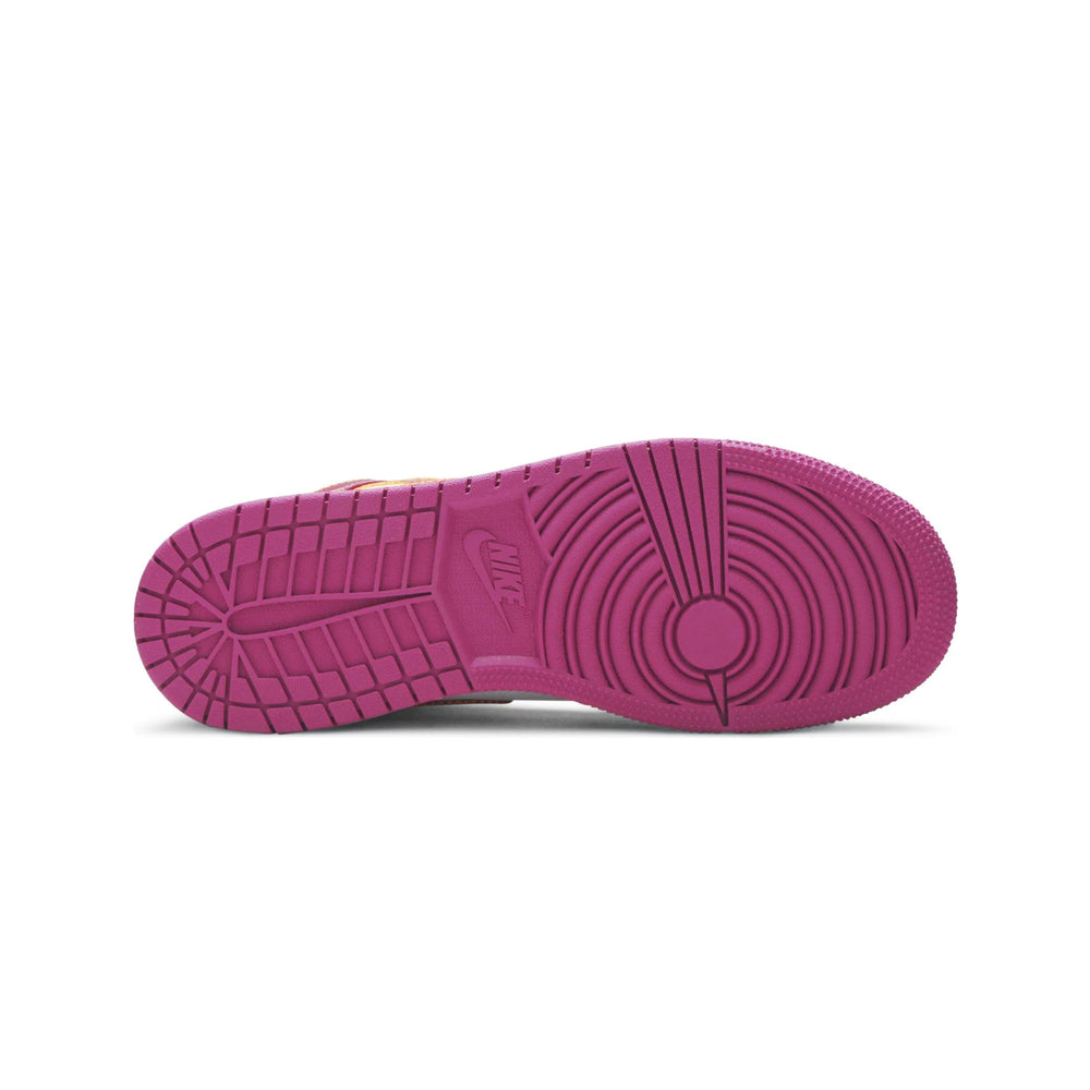 The Air Jordan 1 Mid 'Dia de los Muertos' GS features a striking color palette inspired by the traditional festivity. The upper is crafted from premium white leather, which serves as a canvas for vivid, multi-colored floral and skeleton graphics—signature motifs of Día de los Muertos. The overlays are done in vibrant hues of purple, orange, and yellow, providing a vivid contrast against the base. The sneaker is finished with unique embroidery on the heel and tongue that pays tribute to traditional sugar skull art, while the outsole is adorned with festive patterns. Each pair includes intricate design details that symbolize the celebration of life and death, making this release a culturally resonant addition to the Jordan Brand's storied lineup.