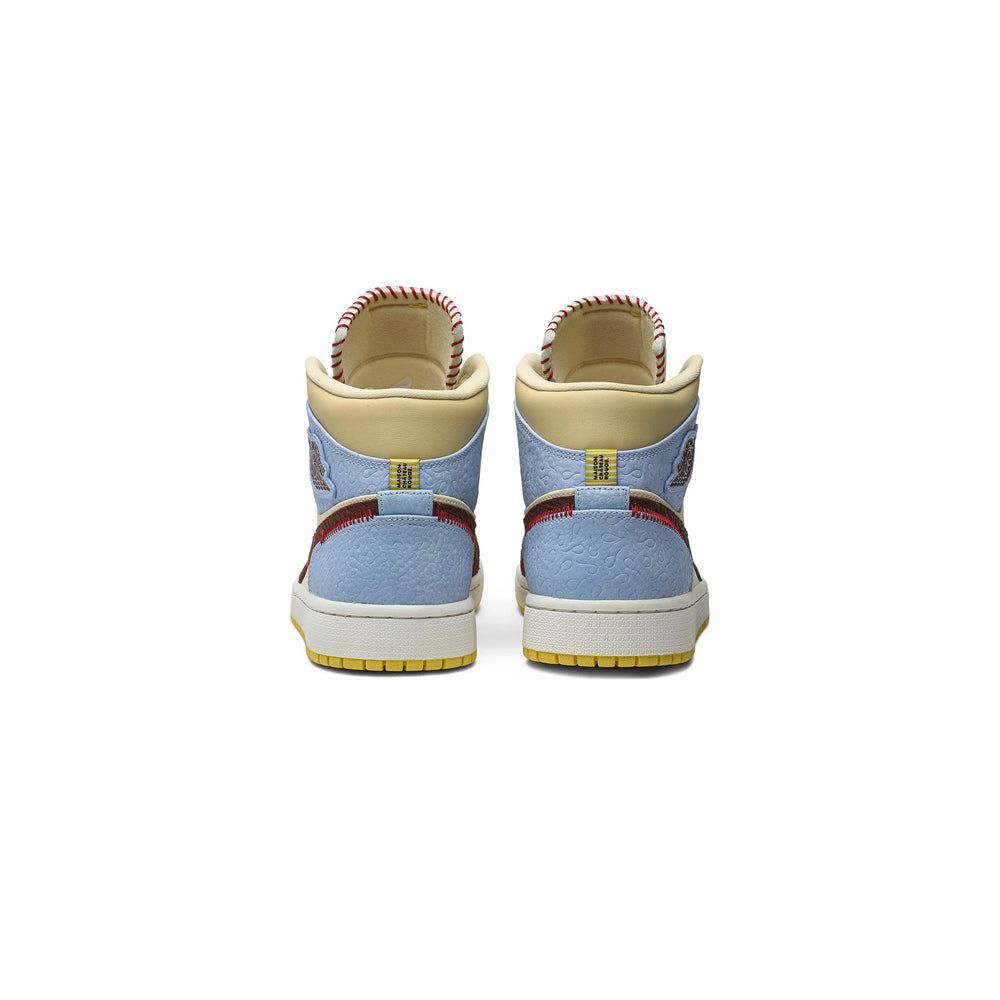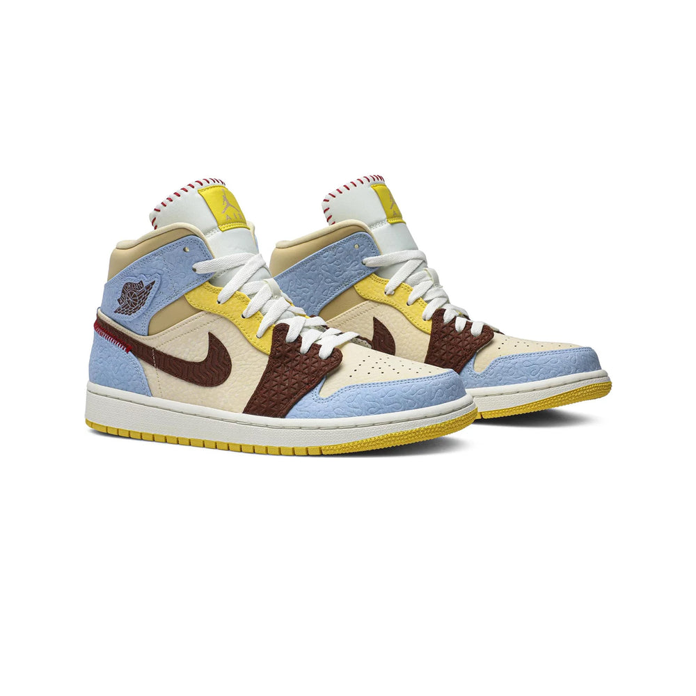 Crafted with a combination of premium materials, the Air Jordan 1 Mid SE 'Fearless Maison Chateau Rouge' features a luxurious mix of leather and intricate stitch detailing, reminiscent of traditional African craftsmanship. The warm "Cider" and "Gold" tones create a vibrant contrast against the clean white leather base, while geometric patterns and embossed overlays showcase the meticulous artistry of Maison Chateau Rouge. The sneaker is finished with a unique lace tag featuring the Maison Chateau Rouge logo, reinforcing its collaborative nature. The tongue features "Maison Chateau Rouge" branding, adding a layer of exclusivity to this already bold design. Celebrating culture, craftsmanship, and individuality, this Air Jordan 1 Mid SE stands as a symbol of unity and fearless creativity.