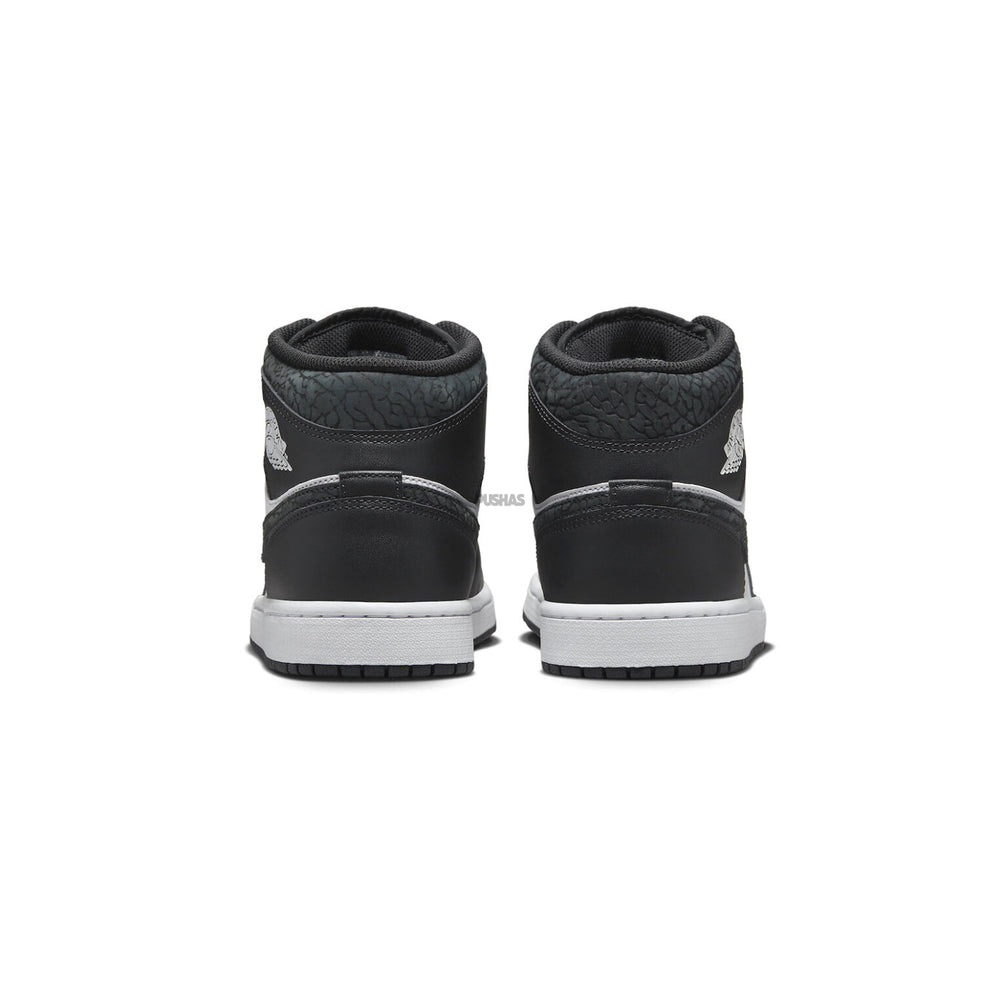 The 'Panda Elephant' colorway features a unique blend of black and white, creating a striking contrast reminiscent of the black and white fur pattern of a panda. The leather upper is adorned with elephant print overlays, adding a textured and distinctive touch that sets these Jordans apart. The mid-top silhouette offers ankle support and a fashion-forward look that easily transitions from the courts to the streets.