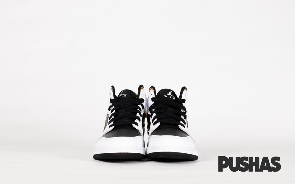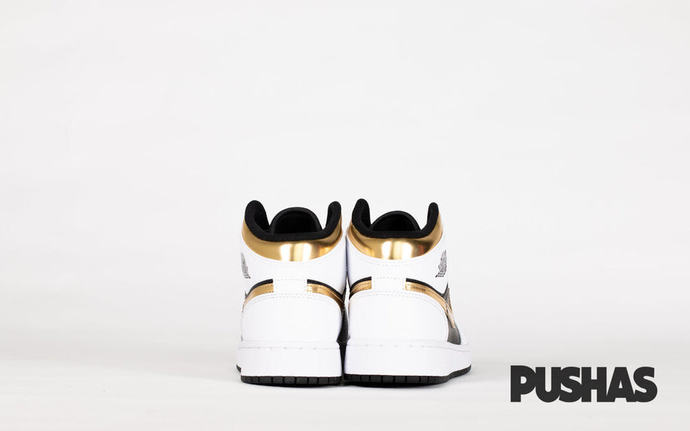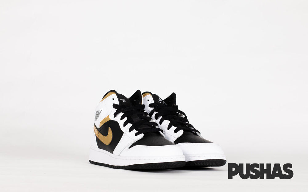 Buy the Nike Air Jordan 1 Mid 'White Gold Black' GS.