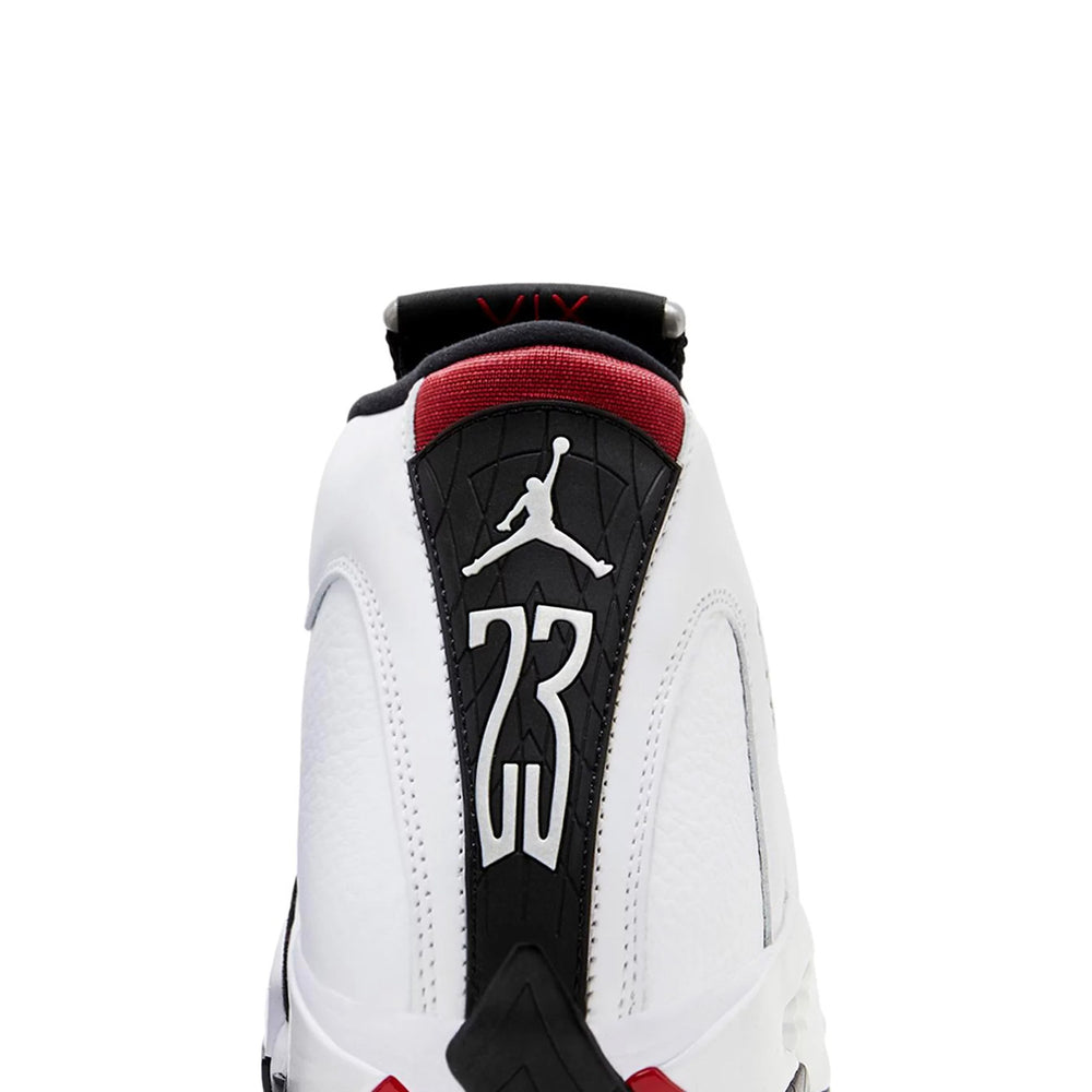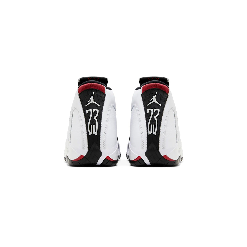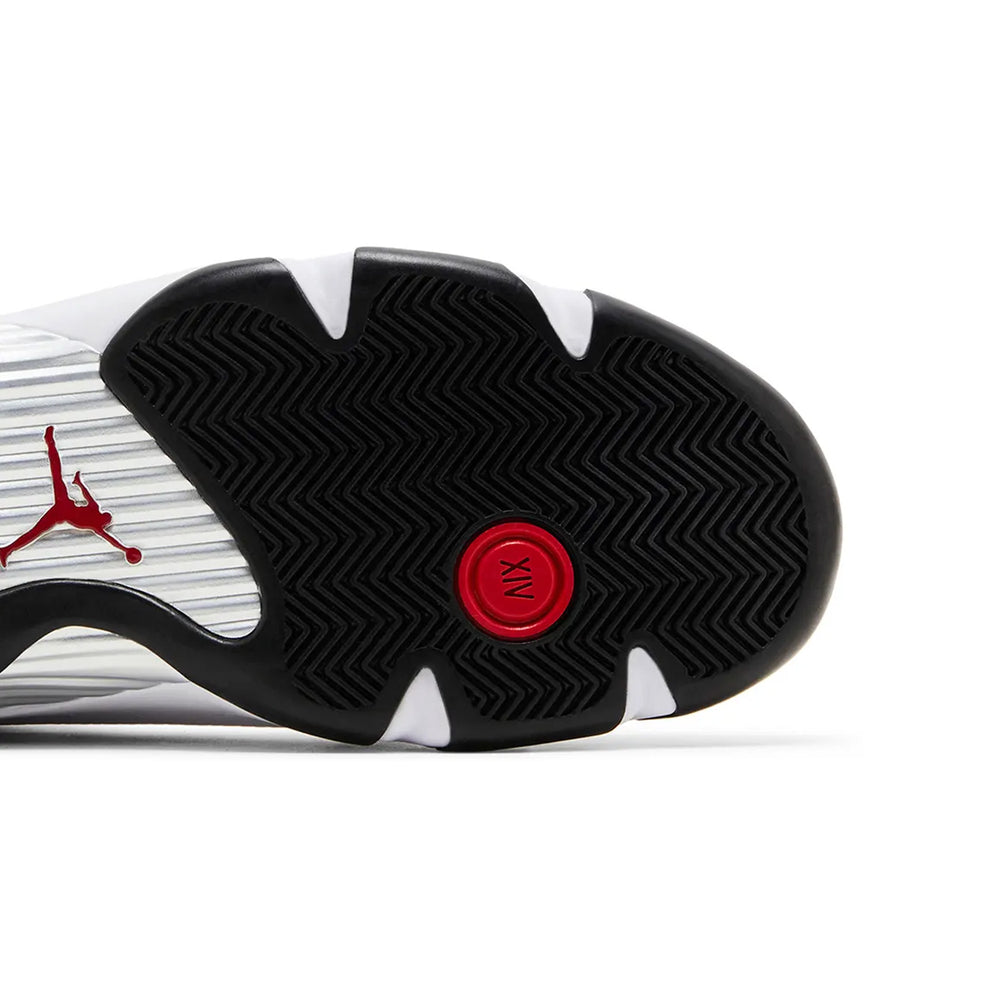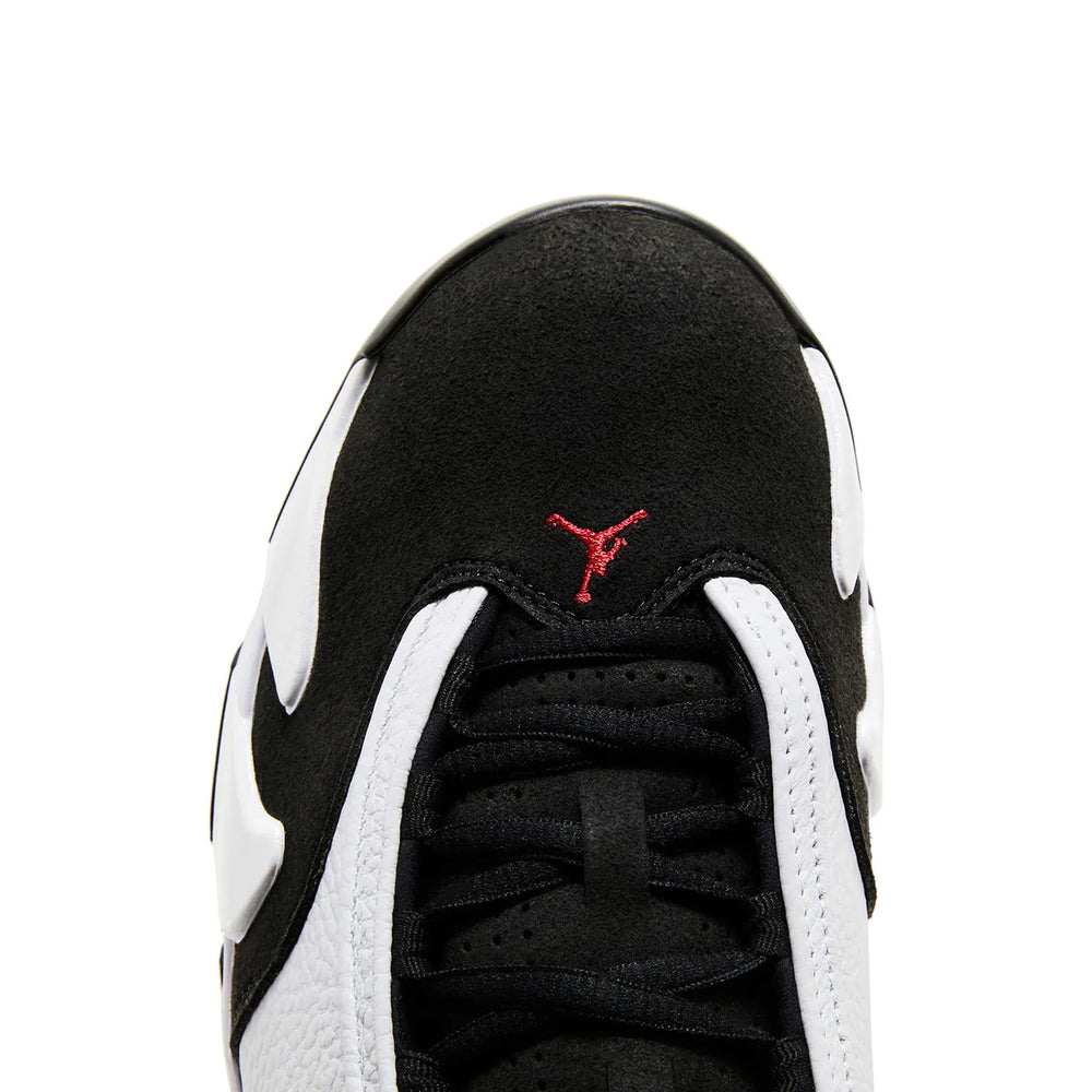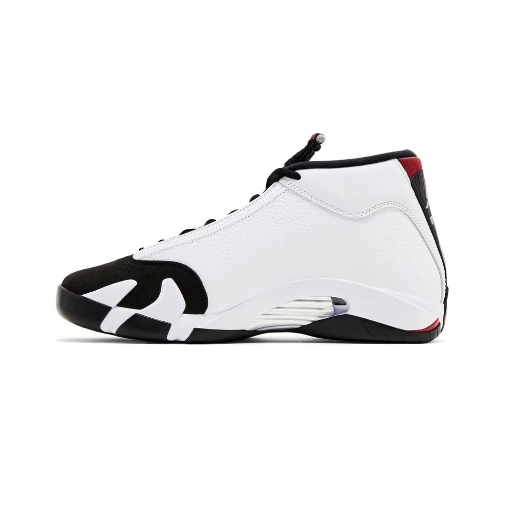 • Timeless 'Black Toe' Colorway: Featuring a white leather upper with black leather on the toe and heel, this color scheme continues to define the Jordan 14 silhouette, blending boldness with versatility.