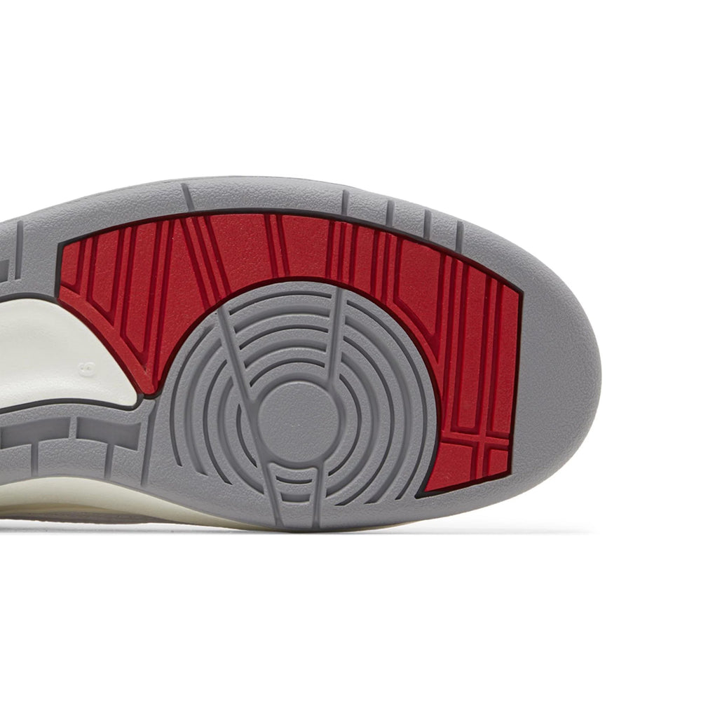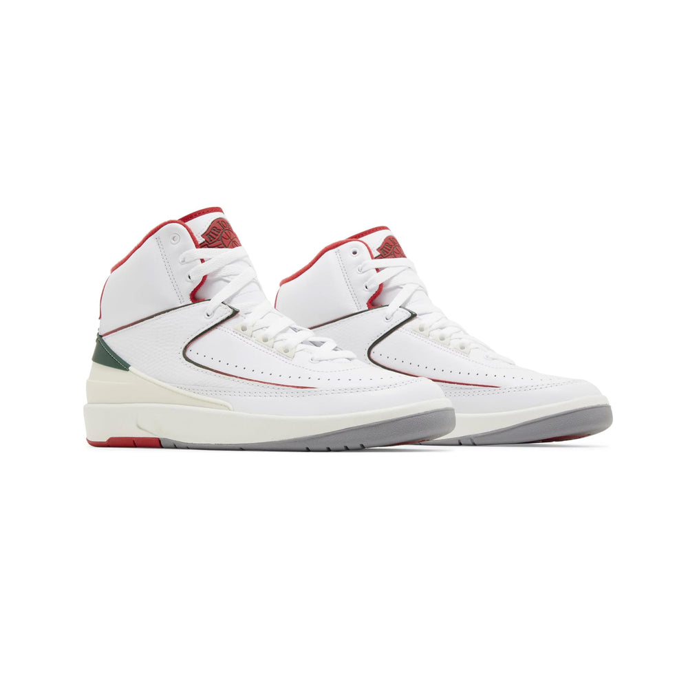 The Air Jordan 2 Retro 'Origins' features a premium leather upper in clean white, contrasted by eye-catching red and black accents throughout the shoe. The midsole boasts a sleek, all-black finish, while a vibrant red outsole adds a pop of color and further enhances its retro-inspired aesthetic. The shoe's classic wings logo on the tongue stands out in red, harkening back to the original design that made the Air Jordan 2 iconic. With perforated panels for breathability and a padded collar for comfort, this sneaker effortlessly merges style with performance. A reinforced heel and TPU eyelets enhance durability, making it ideal for both casual wear and on-court use.