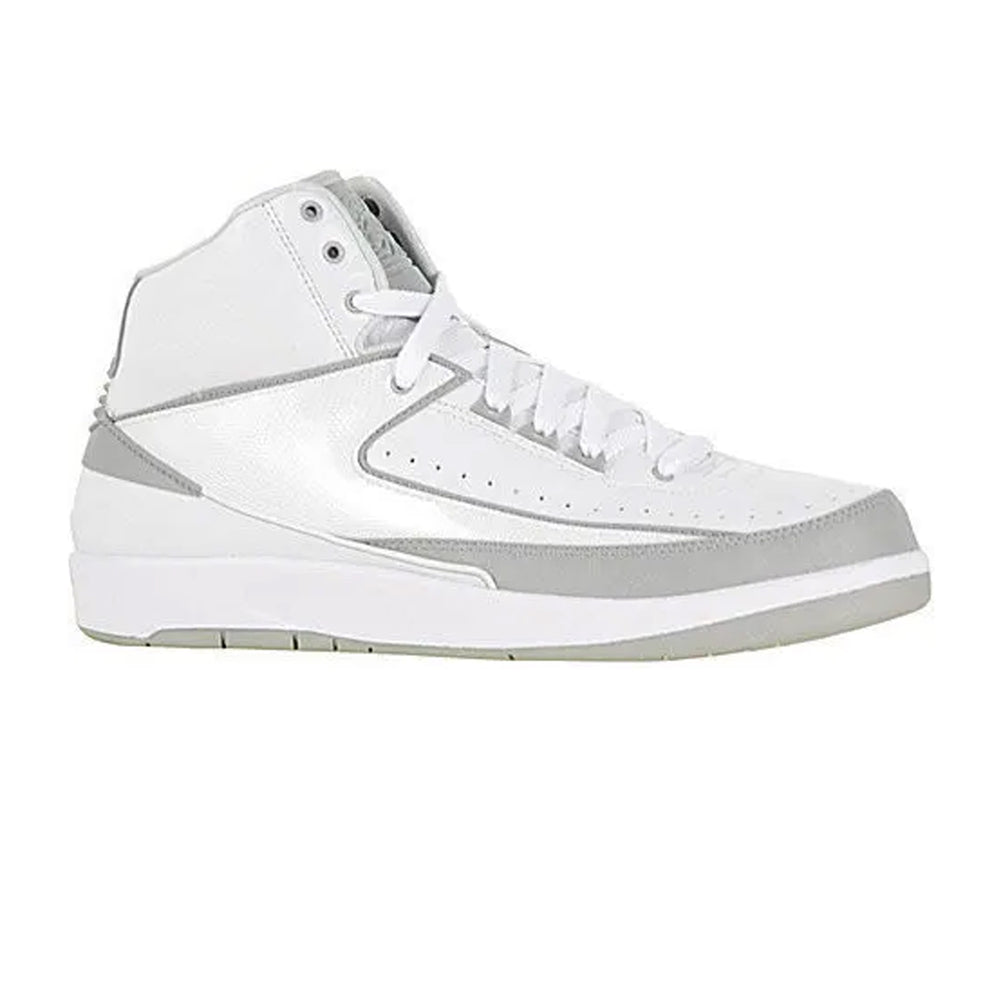 The Air Jordan 2 Retro 'Silver Anniversary' (2010) celebrates a quarter-century of the Air Jordan legacy, offering a sleek, minimalist design that underscores its enduring appeal. This special edition captures the essence of the Air Jordan 2 silhouette while adding an understated elegance that honors the milestone anniversary. Overview The sneaker features a clean and versatile "Silver Anniversary" colorway, dominated by a white leather upper with subtle gray accents that enhance its refined aesthetic. The premium leather construction showcases the shoe's classic paneled design, with faux lizard skin detailing adding texture and a luxurious touch. Perforations along the toe box and side panels improve breathability, while the tonal midsole provides a cohesive look. The minimalist design is complemented by a metallic silver Jumpman logo on the tongue, adding a celebratory nod to the 25th anniversary. This release stays true to the Jordan 2’s heritage while incorporating details that emphasize both style and comfort. Key Highlights • 25th Anniversary Design: Celebrates the Air Jordan legacy with a timeless "Silver Anniversary" theme, showcasing subtle sophistication. • Premium Materials: Constructed with high-quality leather, featuring textured faux lizard skin overlays for a touch of luxury. • Iconic Silhouette: Retains the classic Air Jordan 2 design with perforations for breathability and a tonal midsole for a polished finish.