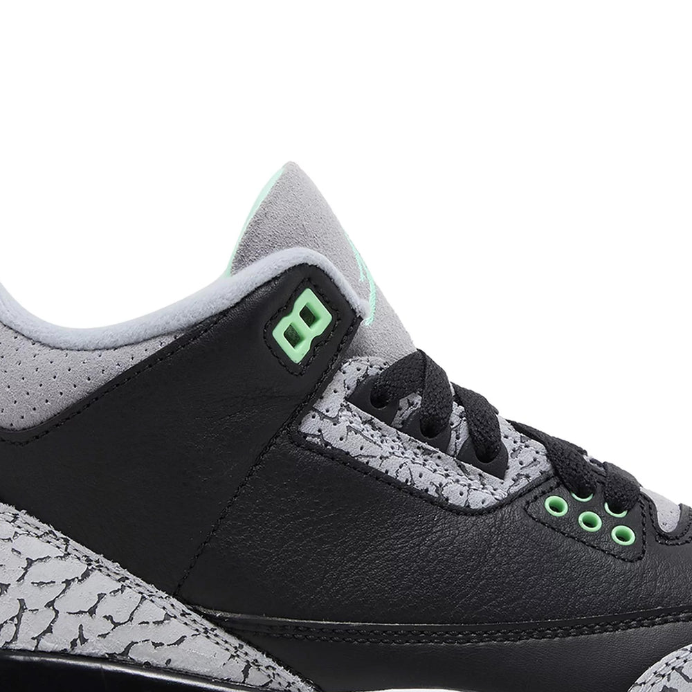 • Modern 'Green Glow' Accents: The bold green detailing on the eyelets, midsole, and branding offers a fresh take on the classic Air Jordan 3 design.
