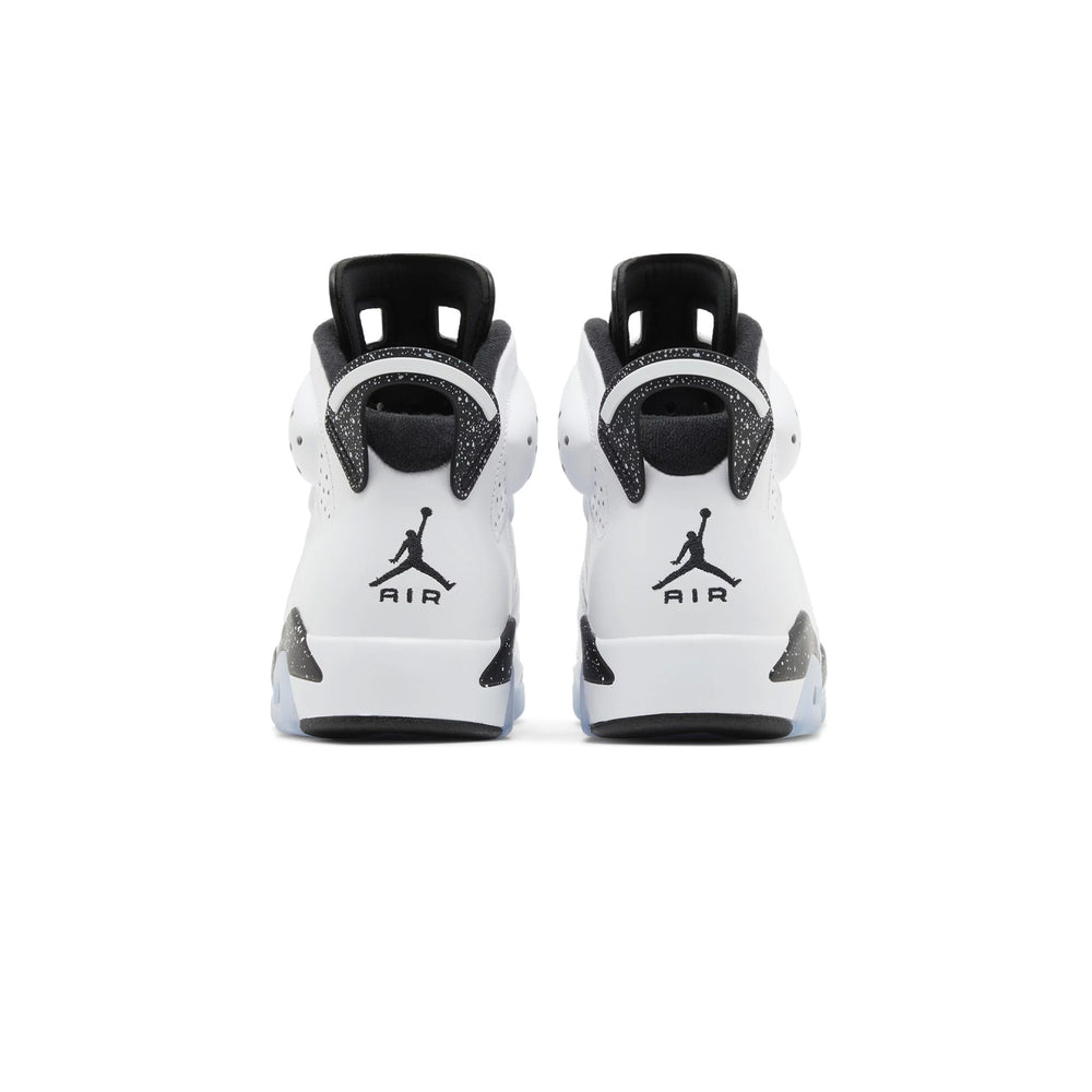 Crafted with meticulous attention to detail, the Air Jordan 6 Retro 'Reverse Oreo' showcases a striking black nubuck upper, providing a sleek and sophisticated base. White speckles adorn the midsole, capturing the essence of the original 'Oreo' colorway but in a captivating reverse format. The signature perforated panels and translucent rubber outsole remain true to the classic Air Jordan 6 design, ensuring superior breathability and traction.
