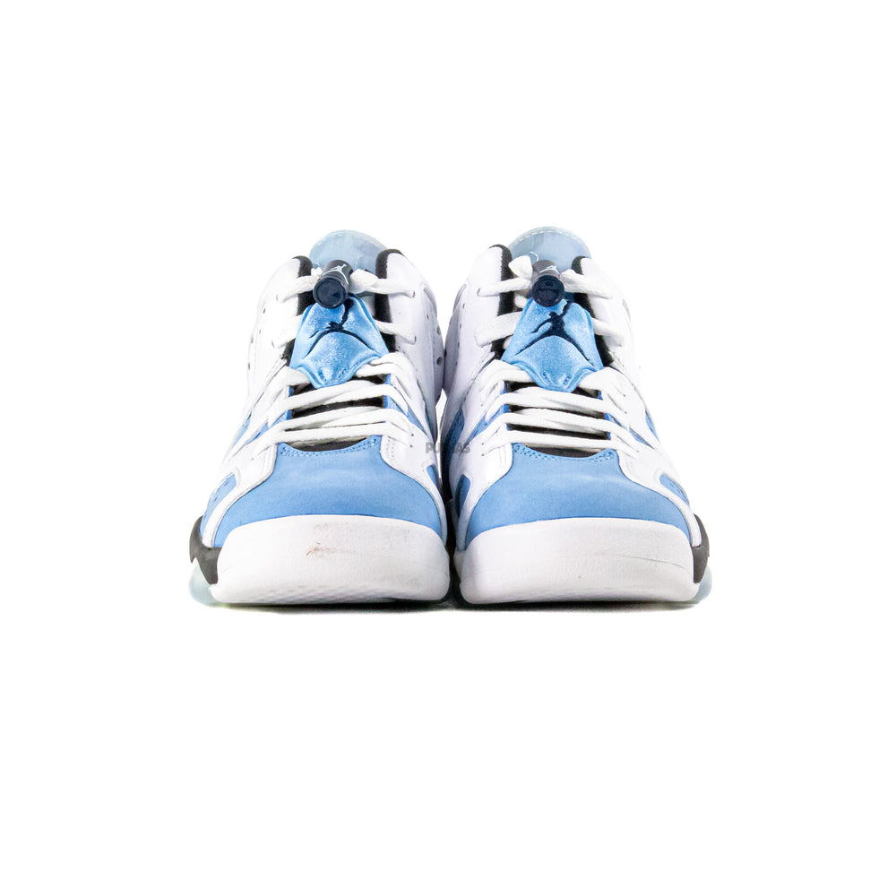 Moreover, this iteration of the Air Jordan 6 is tailored specifically for Grade School sizes, ensuring a perfect fit for young athletes and enthusiasts. Whether hitting the court or making a fashion statement on the streets, the Air Jordan 6 Retro 'UNC White' GS promises to elevate any ensemble with its undeniable charm and versatility.