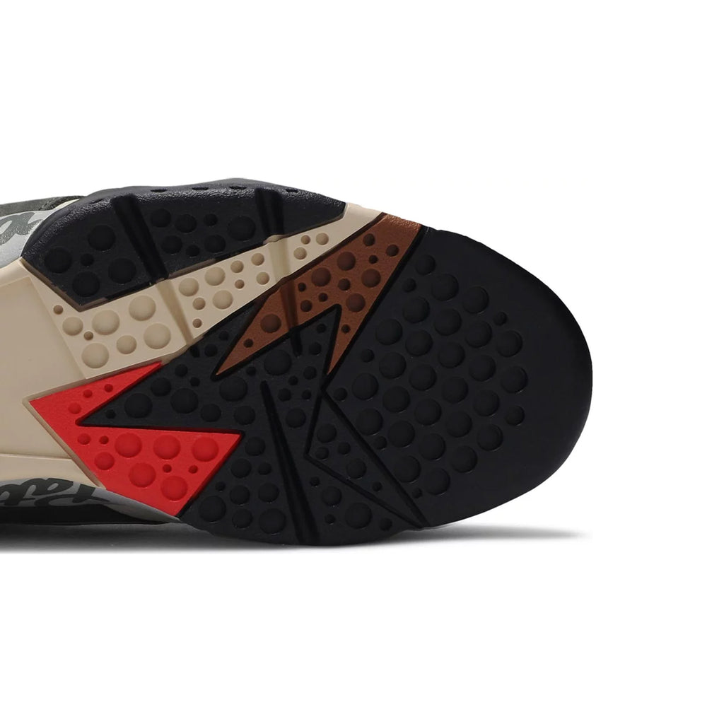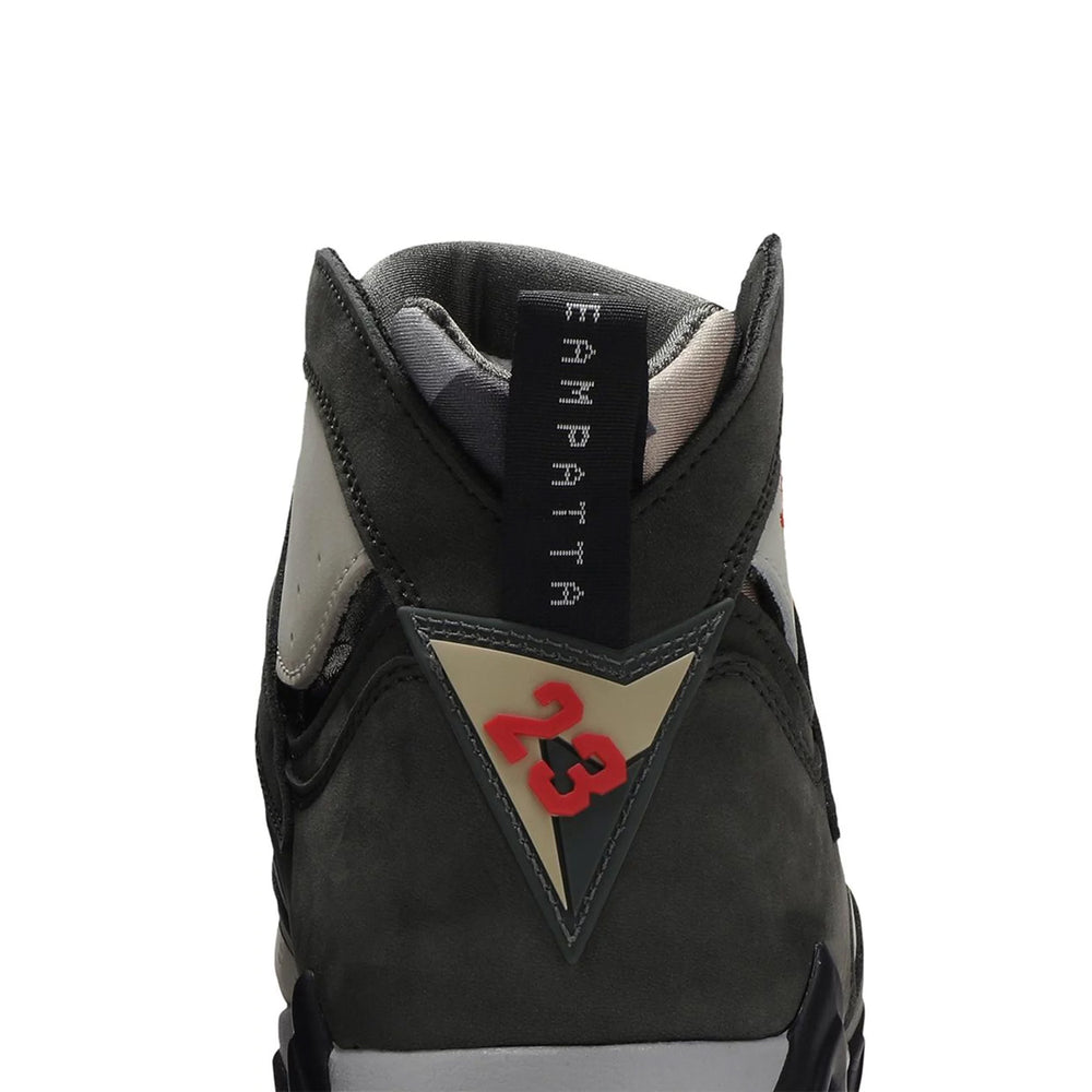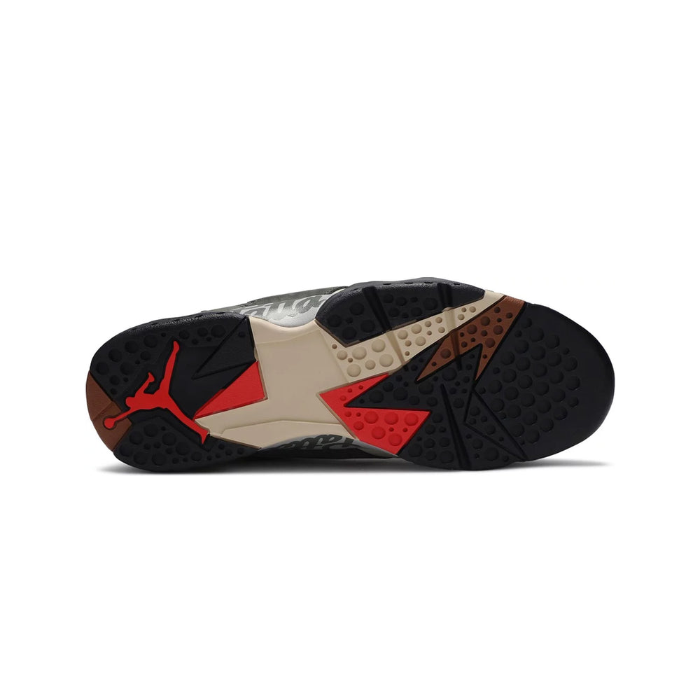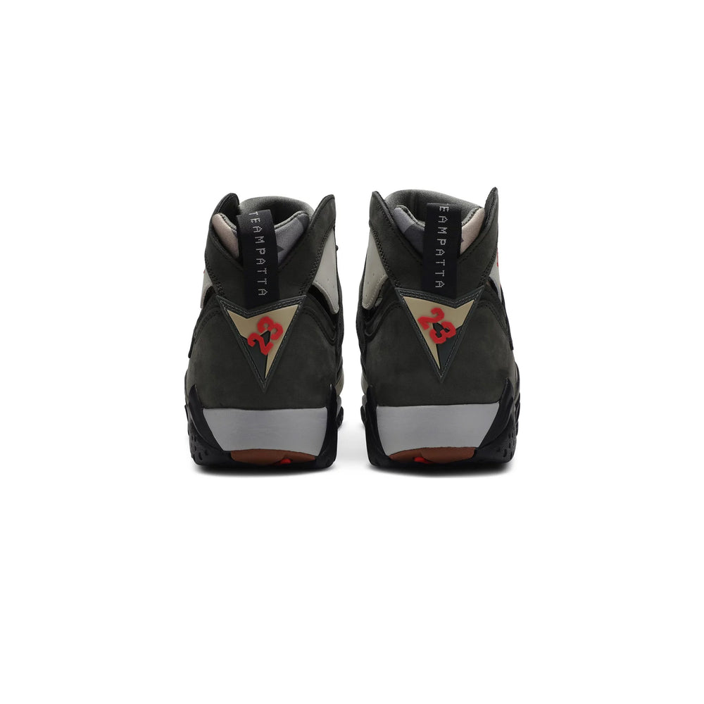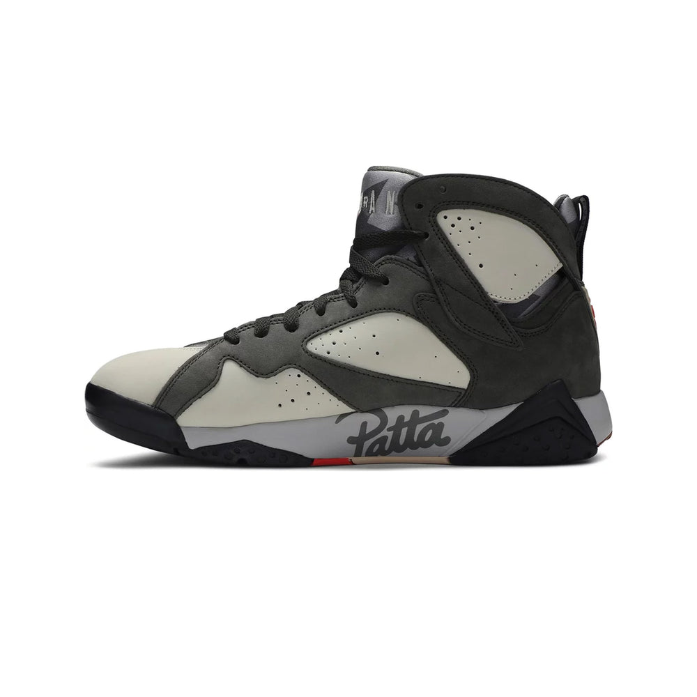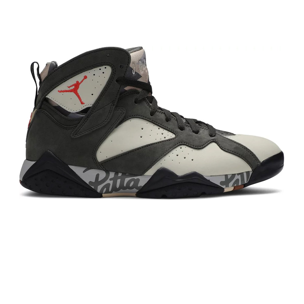 Jordan Brand and Amsterdam-based streetwear company Patta worked together to create a two-piece pack of the popular Air Jordan 7 Retro SP. This version features a base made of Icicle nubuck, eye-catching overlays, and a graphic inner bootie made of neoprene. Team Patta is debossed on the pull tab, and brand insignias emerge in a vivid crimson. The last touch of style is provided by logotypes along the length of the Air-boosted midsole and a multicoloured rubber outsole.
