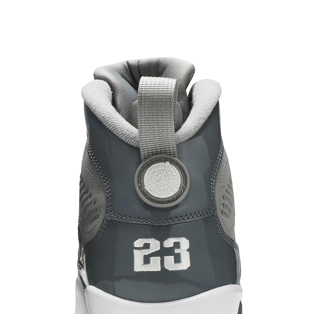 The Air Jordan 9 Retro Cool Grey (2012) features a sleek "Cool Grey" nubuck upper, complemented by patent leather overlays that add a subtle sheen. This sophisticated grey palette is accented by crisp white detailing on the midsole and branding, providing a striking contrast. The sneaker maintains the distinctive Air Jordan 9 silhouette, known for its high-top design and intricate stitching that echoes the global influence of the original model. A signature white Jumpman logo graces the heel, symbolizing Michael Jordan's legacy and his impact on the sport and sneaker culture.