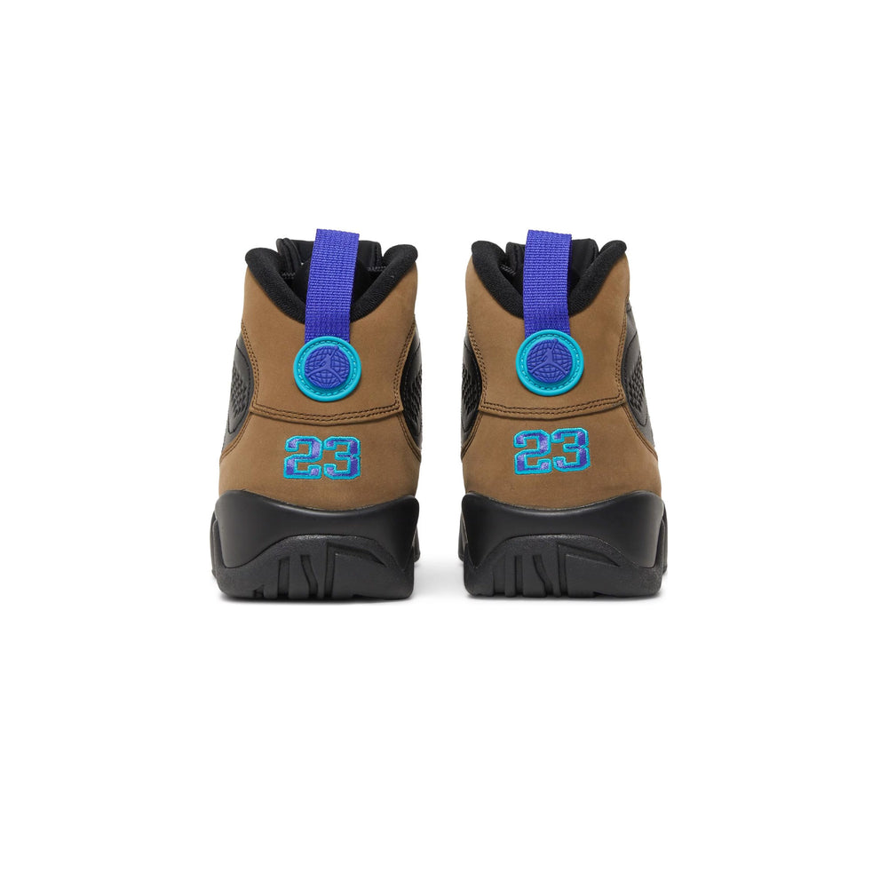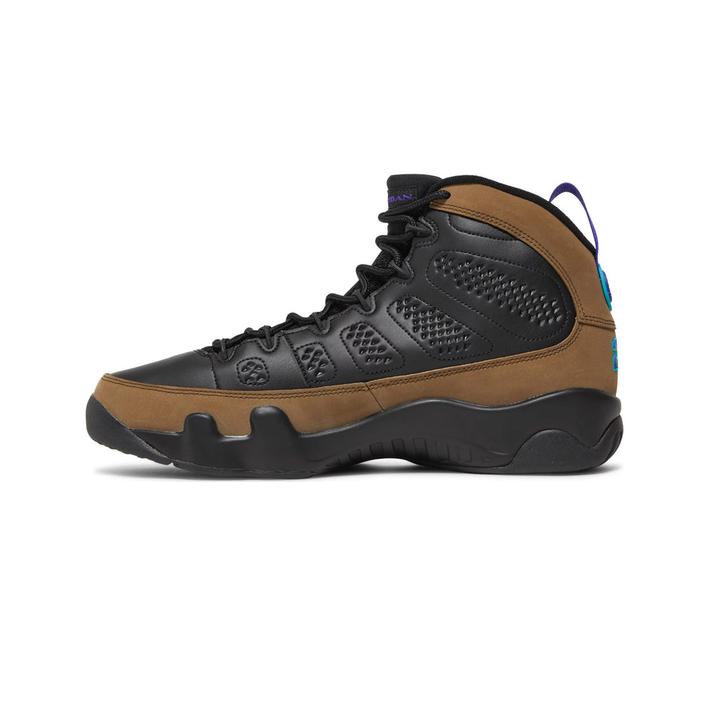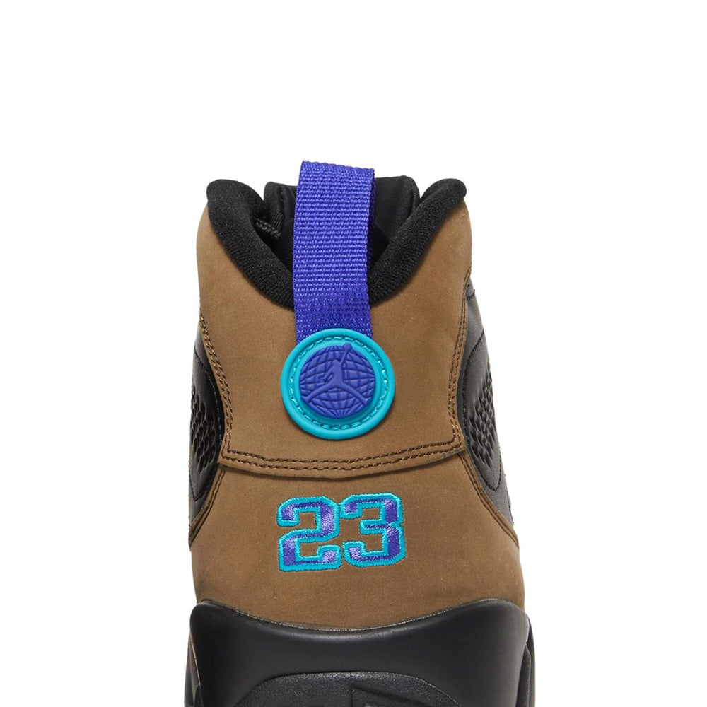 The Air Jordan 9 Retro 'Light Olive Concord' (2023) stands as a testament to the enduring legacy of the Jordan Brand, seamlessly blending nostalgic elements with modern design nuances. This latest iteration offers a fresh perspective on the classic Air Jordan 9 silhouette, enhancing its timeless appeal with a sophisticated palette and premium materials.