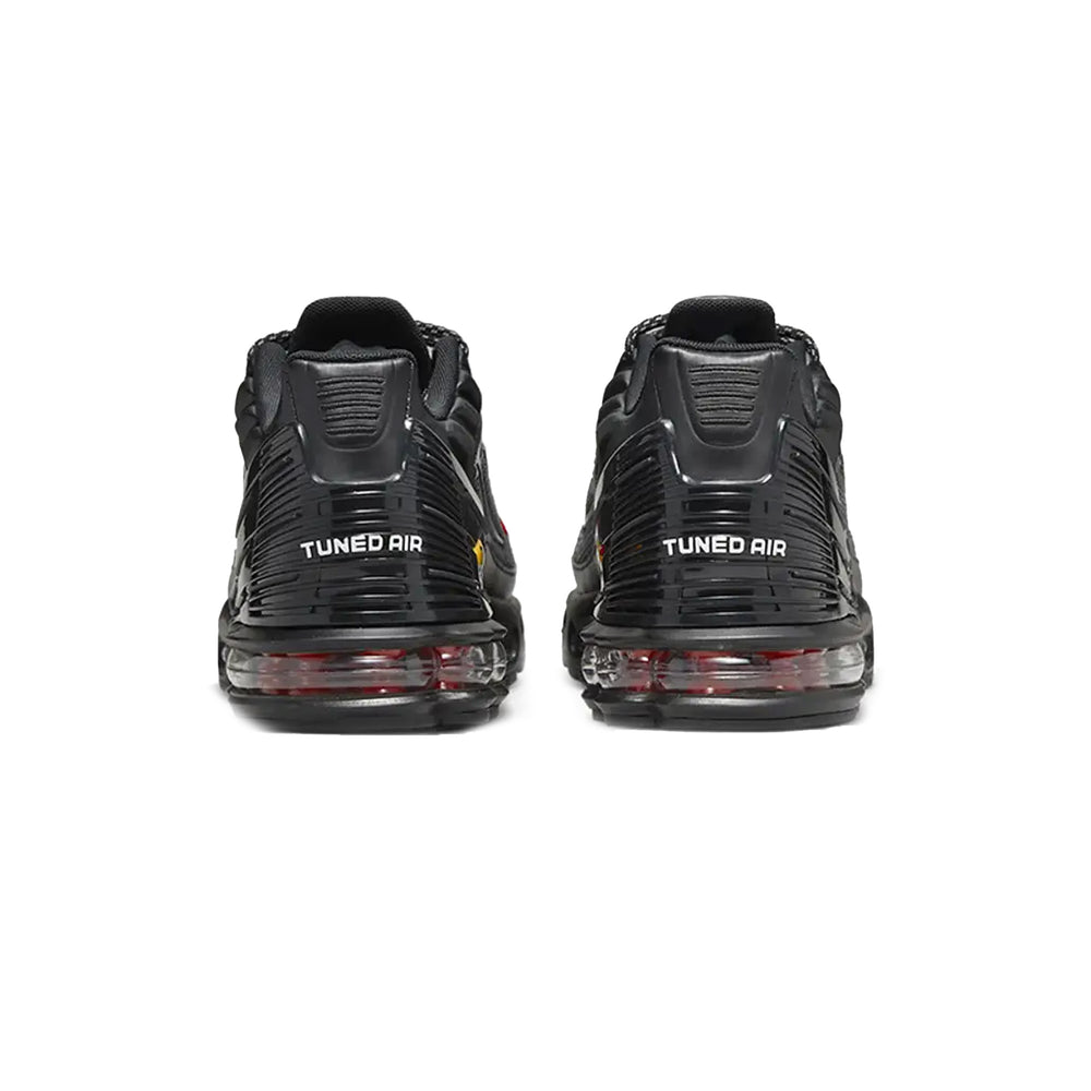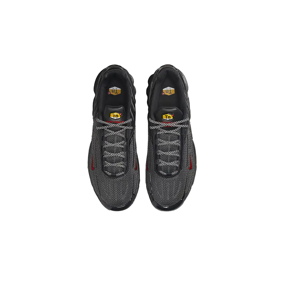 Crafted with a sleek black mesh upper, the Nike Air Max Plus 3 'Black Reflective Silver University Red' is punctuated by reflective silver accents that enhance visibility and add a futuristic edge. The dynamic design is further elevated by vibrant University Red detailing on the signature Tuned Air units and branding elements. The sneaker's design pays homage to the original Air Max Plus but introduces a modern twist with its aerodynamic lines and superior cushioning.