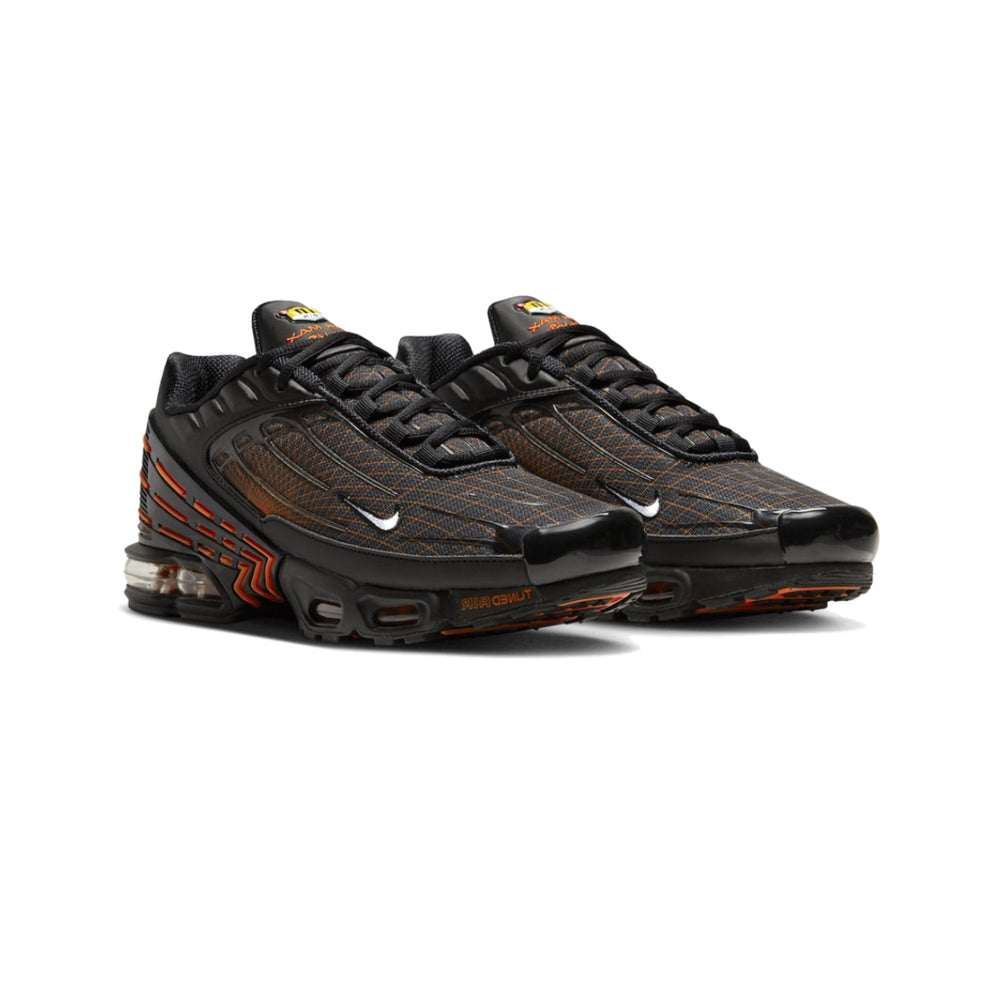 The Nike Air Max Plus 3 'Black Orange Spirograph' (2022) continues Nike's tradition of blending groundbreaking design with cutting-edge technology. This iteration of the Air Max Plus 3 offers a striking aesthetic paired with the unparalleled comfort that the Air Max line is renowned for.