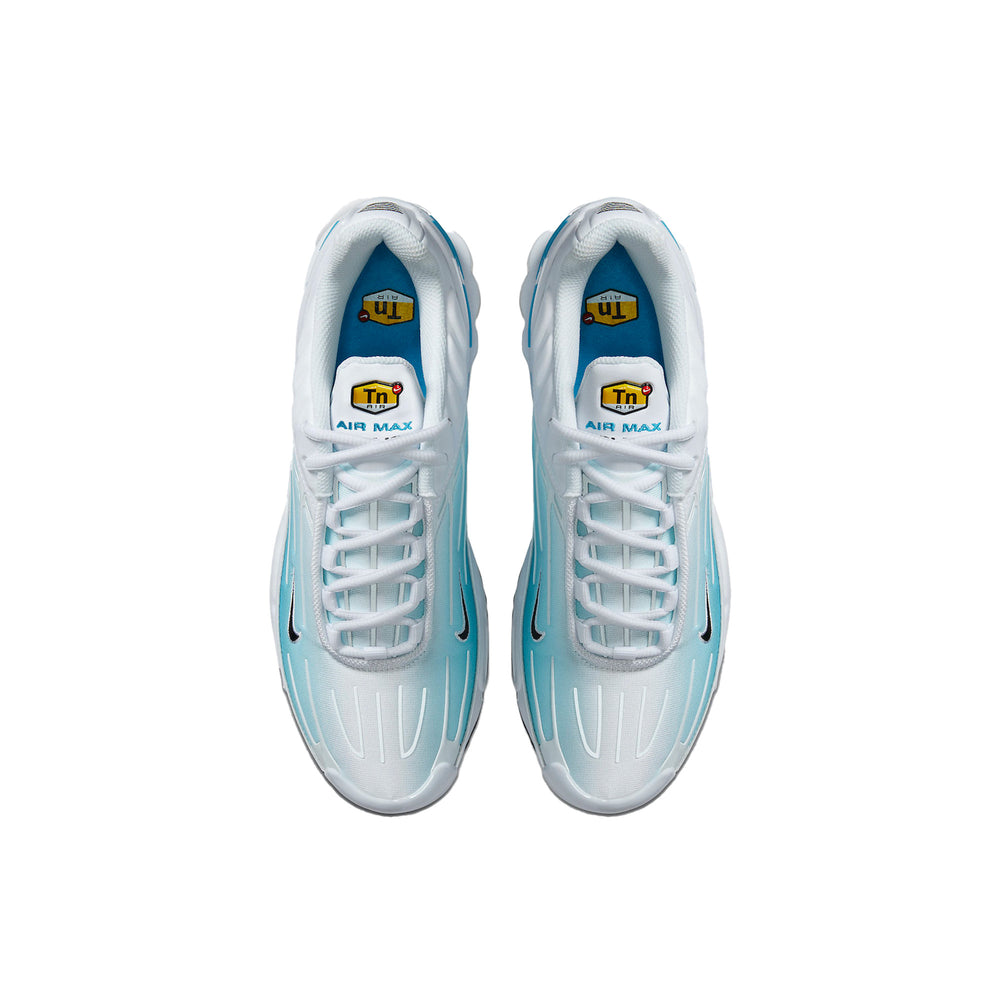 The Nike Air Max Plus 3 "Laser Blue" features colourful accents on a vintage silhouette that draws inspiration from the first Air Max Plus. This model includes the ground-breaking Tuned Air cushioning system from the latter shoe in addition to a breathable mesh upper that features distinct TPU overlays and a gradient color scheme. The tongue and medial heel of the shoe are decorated with the iconic yellow Tuned Air logo from Nike.
