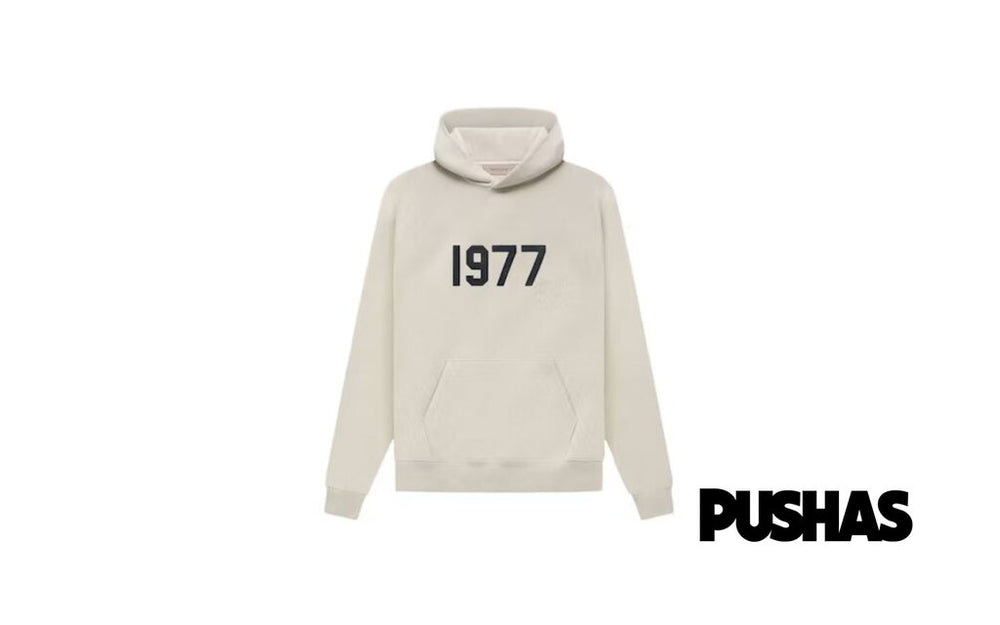 Along with more than 150 other garment items, Fear of God Essentials delivered its Fear of God Essentials 1977 Hoodie in this wheat hue in March 2022.