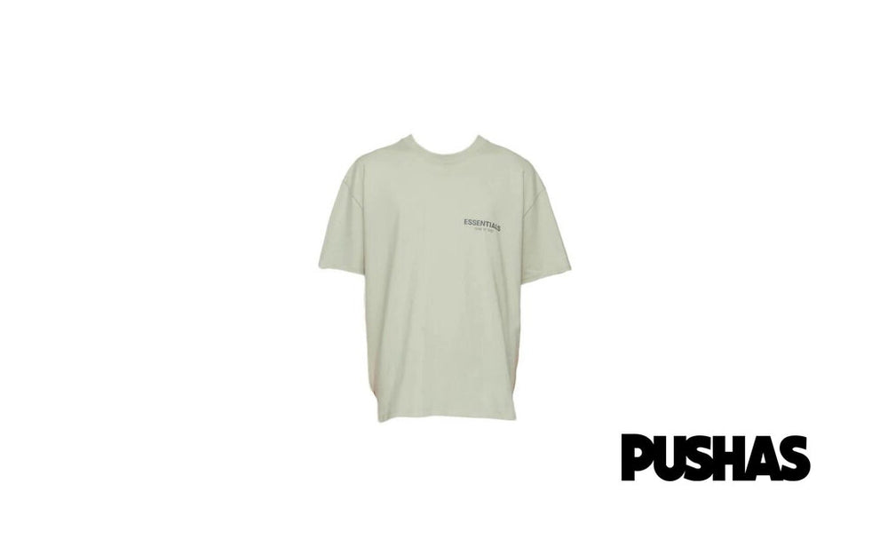 The t-shirt is made of a jersey fabric and is available in the more popular standard size. The t-shirt is entirely made of cotton. The left side of the item bears the emblem for fear of God basics. The main colour of this t-shirt is linen, and it features short sleeves.