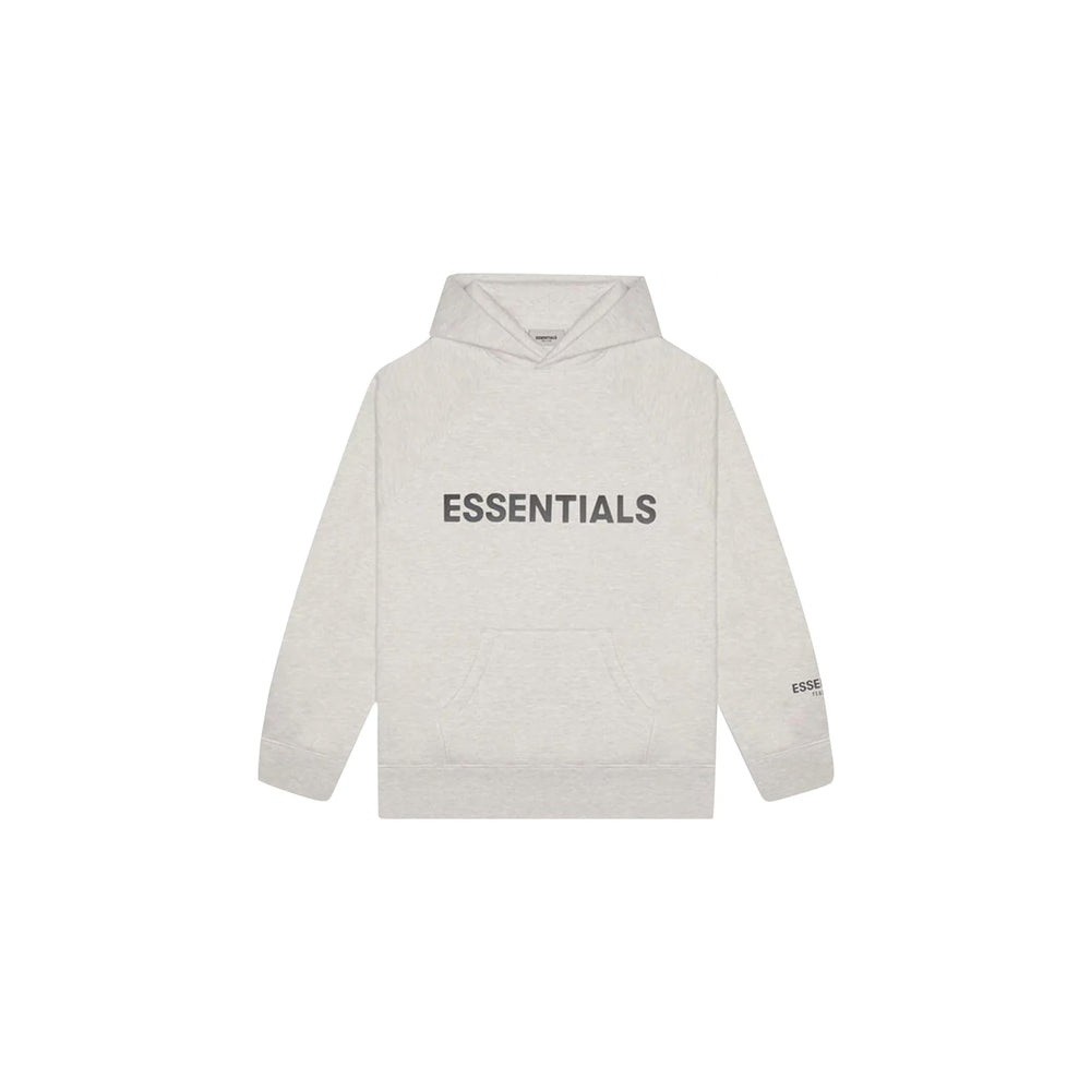 Fear of God's Essentials 3D Silicon Applique Pullover Hoodie in 'Light Heather Oatmeal' (2020) represents a pinnacle of contemporary streetwear, blending luxury with understated elegance. Crafted from premium cotton, this hoodie boasts a sophisticated silhouette enhanced by intricate 3D silicon applique detailing. The 'Light Heather Oatmeal' hue exudes a timeless appeal, making it a versatile addition to any wardrobe.