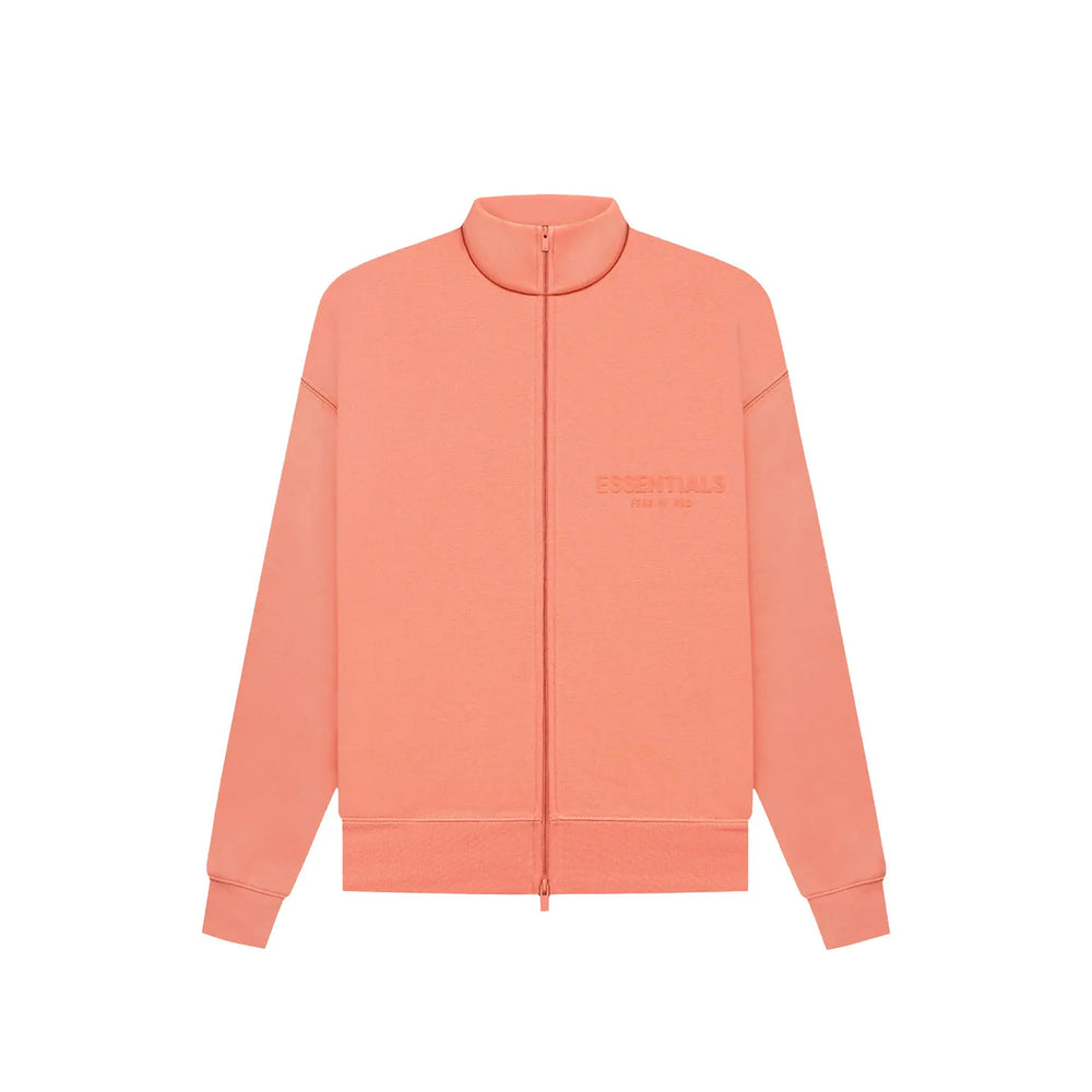 The Fear of God Essentials Full Zip Jacket in 'Coral' features a soft, lightweight fabric in a subtle yet eye-catching coral hue, designed for comfort and warmth during the cooler months. With its full-zip closure and adjustable hood, this jacket ensures practicality, allowing wearers to tailor their look and fit. Ribbed cuffs and hem add structure to the design, while the relaxed fit offers a contemporary silhouette that’s both comfortable and effortlessly stylish. The Essentials logo on the sleeve adds a signature touch, further elevating this streetwear essential.