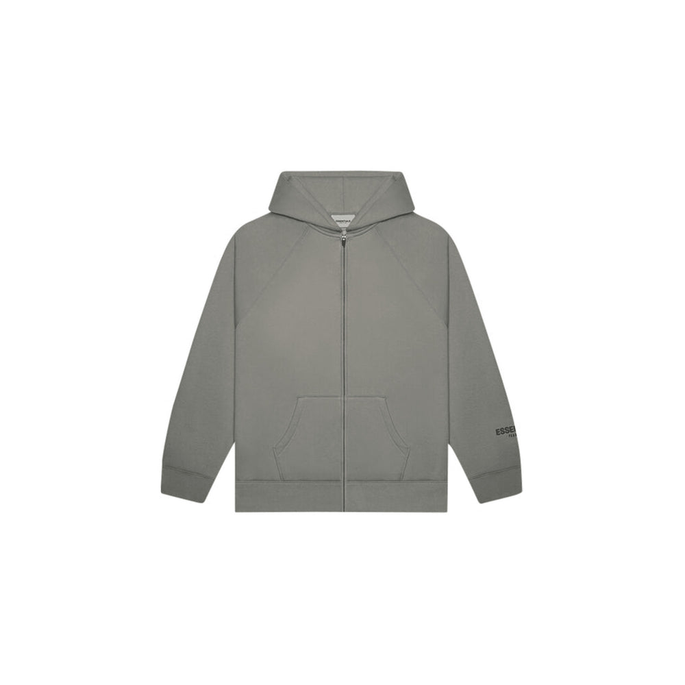The Fear of God Essentials Full Zip Up Hoodie Applique Logo in 'Gray Flannel / Charcoal' (2020) epitomizes the intersection of luxury and streetwear, delivering a sophisticated yet relaxed aesthetic. Crafted from premium cotton, this hoodie offers unparalleled comfort and durability, ensuring it withstands the rigors of daily wear while maintaining a plush feel. The distinct 'Gray Flannel / Charcoal' colorway exudes understated elegance, perfect for effortlessly elevating any casual ensemble.