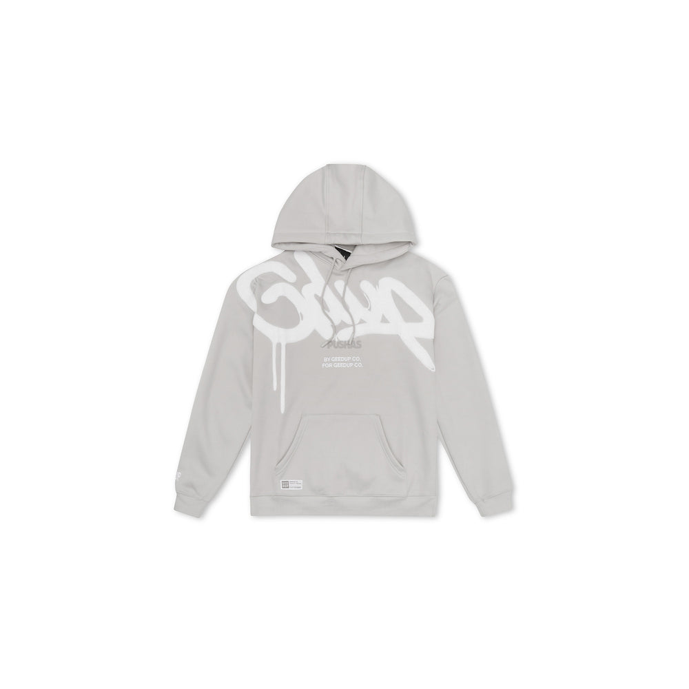 Designed to elevate casual wear to new heights, the Geedup Handstyle Hoodie in 'Grey White' boasts a versatile color palette that effortlessly complements any wardrobe. Its relaxed fit and ribbed cuffs provide superior comfort, making it an ideal choice for both lounging at home and stepping out in style. The hoodie's attention to detail extends to its adjustable drawstring hood and kangaroo pocket, enhancing both functionality and aesthetic appeal.