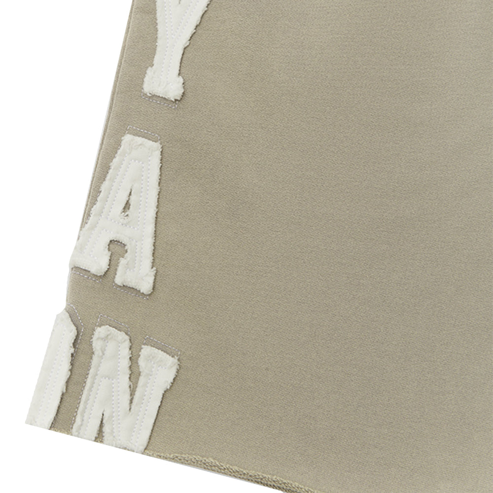 Delivery 09/24 Fabric - 380GSM Brushed Fleece Movers & Shakers distressed EMB appliqué on front leg SYD NY LA LDN distressed EMB on leg sleeve *Relaxed Fit - True to size