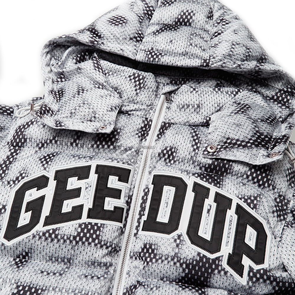 The Geedup Play For Keeps Static Puffer Jacket 'Multi Black / Grey' (2024) elevates winter fashion with a blend of contemporary design and practical functionality, making it an essential addition to any modern wardrobe. As temperatures drop, this jacket promises to keep you warm and stylish, thanks to its innovative construction and sleek aesthetic.