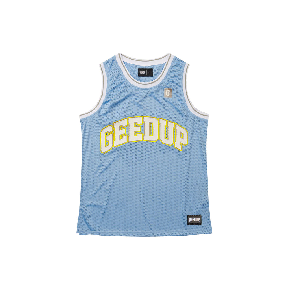The Geedup Team Logo B-Ball Jersey in 'Sky Blue' showcases a perfect blend of classic basketball style and modern streetwear aesthetics. Made from high-quality, breathable polyester mesh fabric, it offers both comfort and durability, making it ideal for both on-court action and everyday wear. The jersey features the iconic Geedup logo emblazoned on the front, a symbol of the brand’s commitment to quality and style. Its design includes ribbed armholes and a crew neck, providing a traditional fit that nods to classic basketball jerseys while maintaining a sleek and stylish look. The sky blue colorway adds a refreshing twist, ensuring you stand out whether you’re playing a game or making a fashion statement.