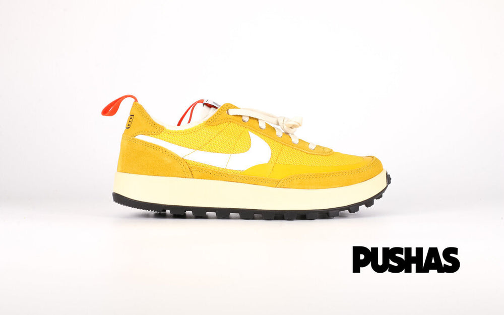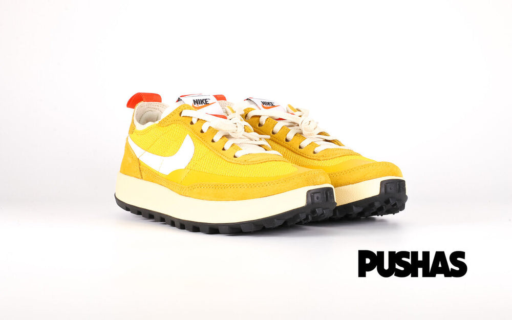 Buy the Nike General Purpose Shoe x Tom Sachs 'Dark Sulfur' (2022) The Tom Sachs x Nike NikeCraft General Purpose Shoe ‘Archive’ features a functional design that aligns with the shoe’s marketing tagline, which cheekily suggests that ‘Creativity is the enemy.’ Based on Sachs’ ongoing research into how ‘our bodies meet the ground,’ the low-top sports a yellow mesh upper with tonal suede overlays and a contrasting white Swoosh. Orange webbing tabs at the tongue and heel assist with easy on and off. The cream-colored rubber midsole packs an EVA wedge for lightweight cushioning, while a black waffle-traction rubber outsole yields optimal grip. This silhouette comes in women's sizing.