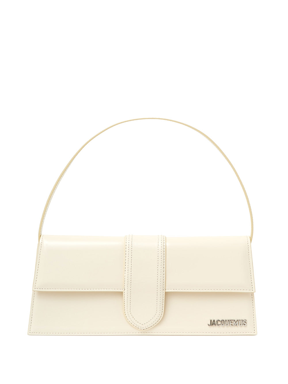 Graced with a single, slender handle, this bag offers a contemporary take on the classic shoulder bag design, with dimensions of 28 x 13 x 5 cm that make it an understated yet bold choice for any ensemble. Within, a discreet inner pocket provides a sanctuary for your personal treasures. Making a subtle statement is the gold logo detail that adorns the front, a nod to the understated luxury that Jacquemus is renowned for. With its roots in Italy's rich tradition of leather craftsmanship, this shoulder bag is not just a carryall—it's a tribute to the art of fashion. Perfectly paired with any outfit, the Jacquemus 'Ivory' Leather Long Shoulder Bag is an exquisite addition to your wardrobe, promising to carry you from day to night with ease and elegance.
