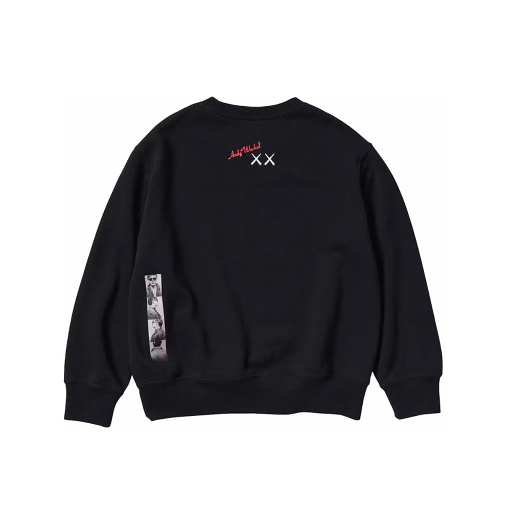 The Kaws x Uniqlo Warhol Kids Sweatshirt Graphic 476408 'Black' (2024) is a masterful convergence of contemporary streetwear and iconic pop art, designed to captivate both young and old. This collaboration between renowned artist Kaws and Uniqlo pays homage to the enduring legacy of Andy Warhol, infusing classic Warholian aesthetics with Kaws' distinct, modern twist.