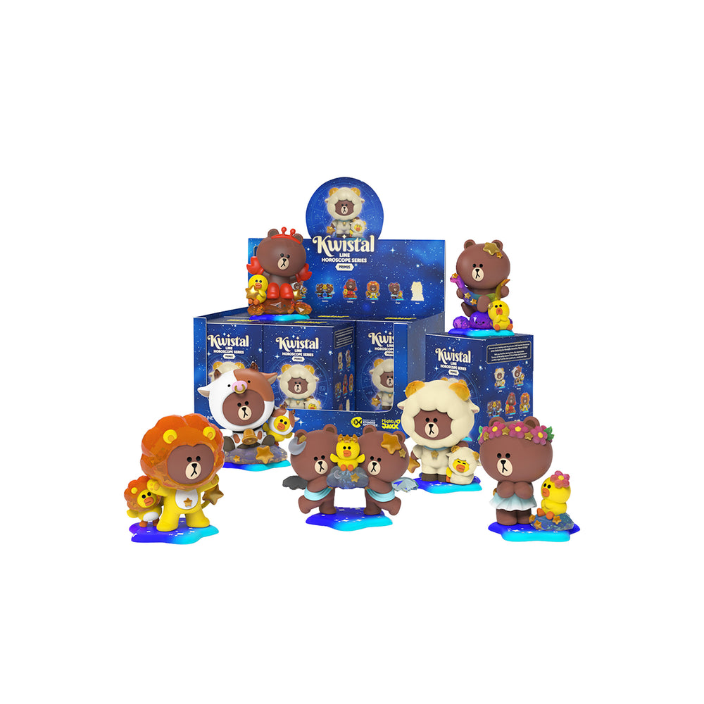 The Kwistal: LINE Horoscope Series Primus features a striking design inspired by celestial themes, meticulously crafted to embody the essence of the zodiac. It is constructed from high-quality PVC, providing both durability and a premium finish. The figure stands out with its iridescent crystal-like surface that reflects light in a mesmerizing array of colors, giving it a dynamic and otherworldly appearance. Each piece is hand-painted with detailed precision, ensuring that no two figures are exactly alike. The Kwistal's design is complemented by its cosmic-themed base, which includes elements such as stars and constellations, adding depth and context to the overall presentation.