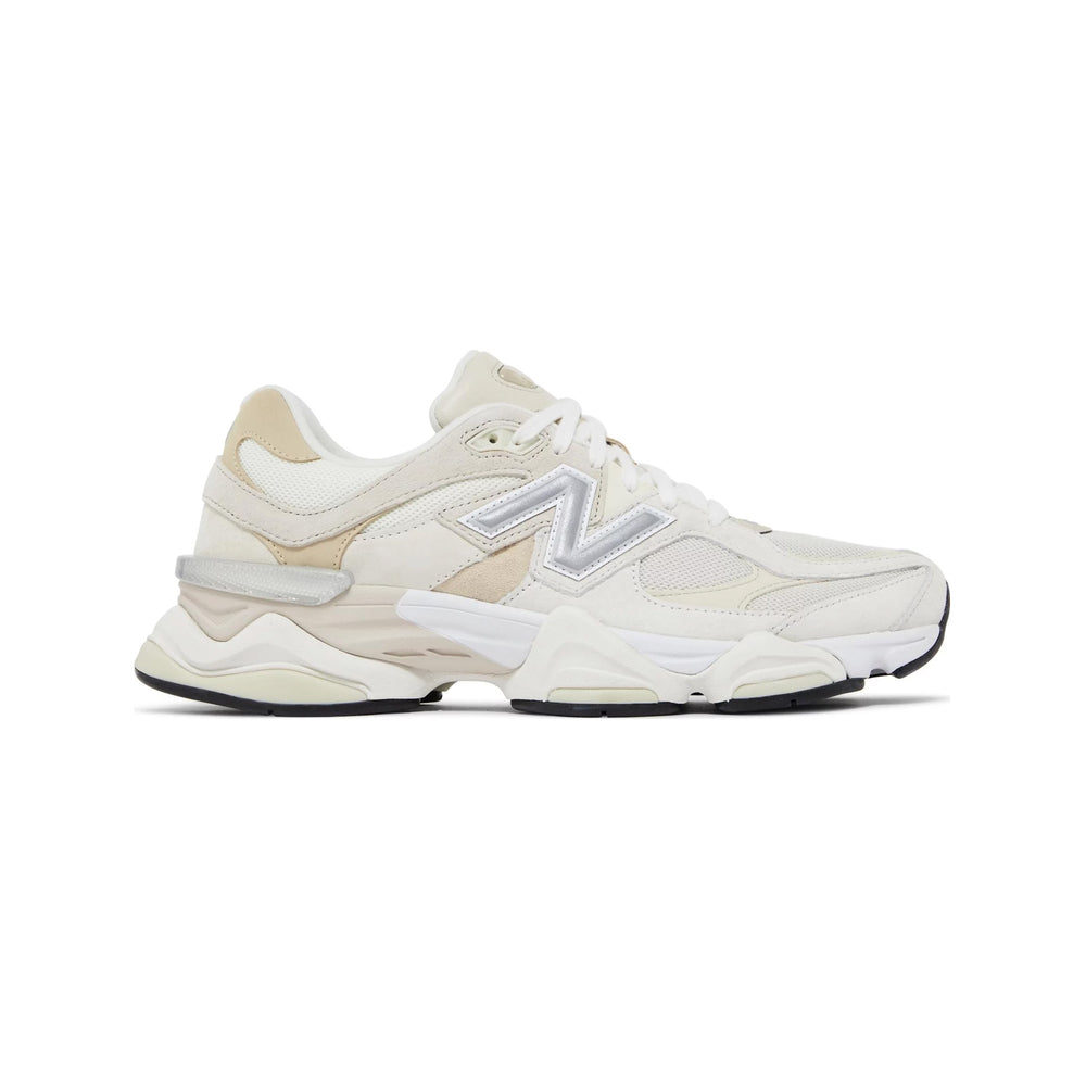 The New Balance 9060 'Turtledove' features a harmonious blend of suede and mesh, offering both comfort and durability. The upper is predominantly composed of premium beige suede, aptly named 'Turtledove,' which exudes a timeless elegance. This neutral base is complemented by subtle grey mesh underlays, enhancing breathability while maintaining a sophisticated appearance. The design is further elevated by reflective accents on the 'N' logo and heel tab, ensuring visibility and a touch of modern flair.