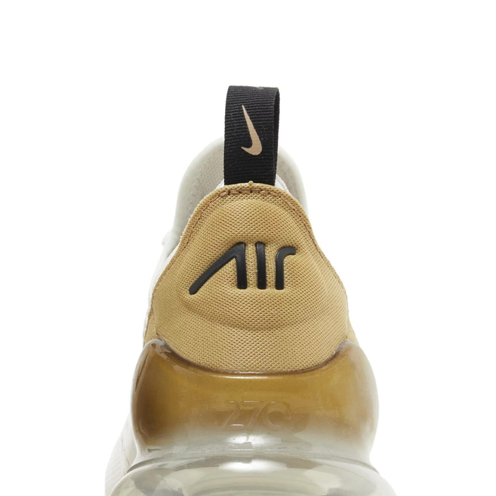 Complementing the neutral upper are the distinctive "Hemp" color accents found on the heel and midsole, adding a subtle yet striking contrast. The signature Air Max 270 unit in the heel delivers unparalleled cushioning and support, offering an ultra-comfortable ride. A durable rubber outsole with a waffle pattern provides excellent traction and stability, essential for various activities.