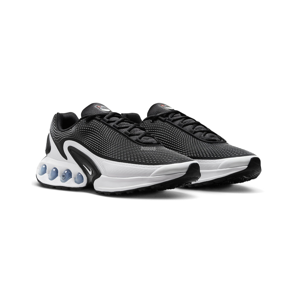 Featuring a Black, White, Cool Grey, and Pure Platinum palette, the Air Max DN 'Black White Cool Grey' showcases a seamless upper paired with a TPU shank clip for unrivaled style and support. At the heart of the sneaker, Dynamic Air cushioning technology introduces a dual-chamber and four-tubed Nike Air unit, delivering exceptional comfort and responsiveness. This state-of-the-art Air system adapts fluidly to your movements, offering optimal bounce and a smooth transition that sets a new standard for wearing Air Max.