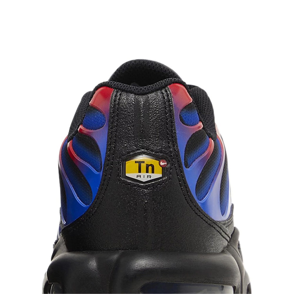 The Nike Air Max Plus TN 'Spider-Man' features a striking combination of red, black, and blue, reminiscent of Spider-Man's classic suit. A black mesh base sets the stage for the dynamic red and blue gradients that dominate the upper, flowing seamlessly from the toe box to the heel. The signature TPU overlays, characteristic of the Air Max Plus, resemble spider webs, adding an extra layer of thematic detail. The Tuned Air cushioning technology provides superior comfort and performance, while the black rubber outsole ensures durability. Nike branding is subtly placed on the tongue and heel, maintaining the shoe's sleek aesthetic. Whether for performance or style, this sneaker captures the essence of both Spider-Man and Nike’s innovative design ethos.