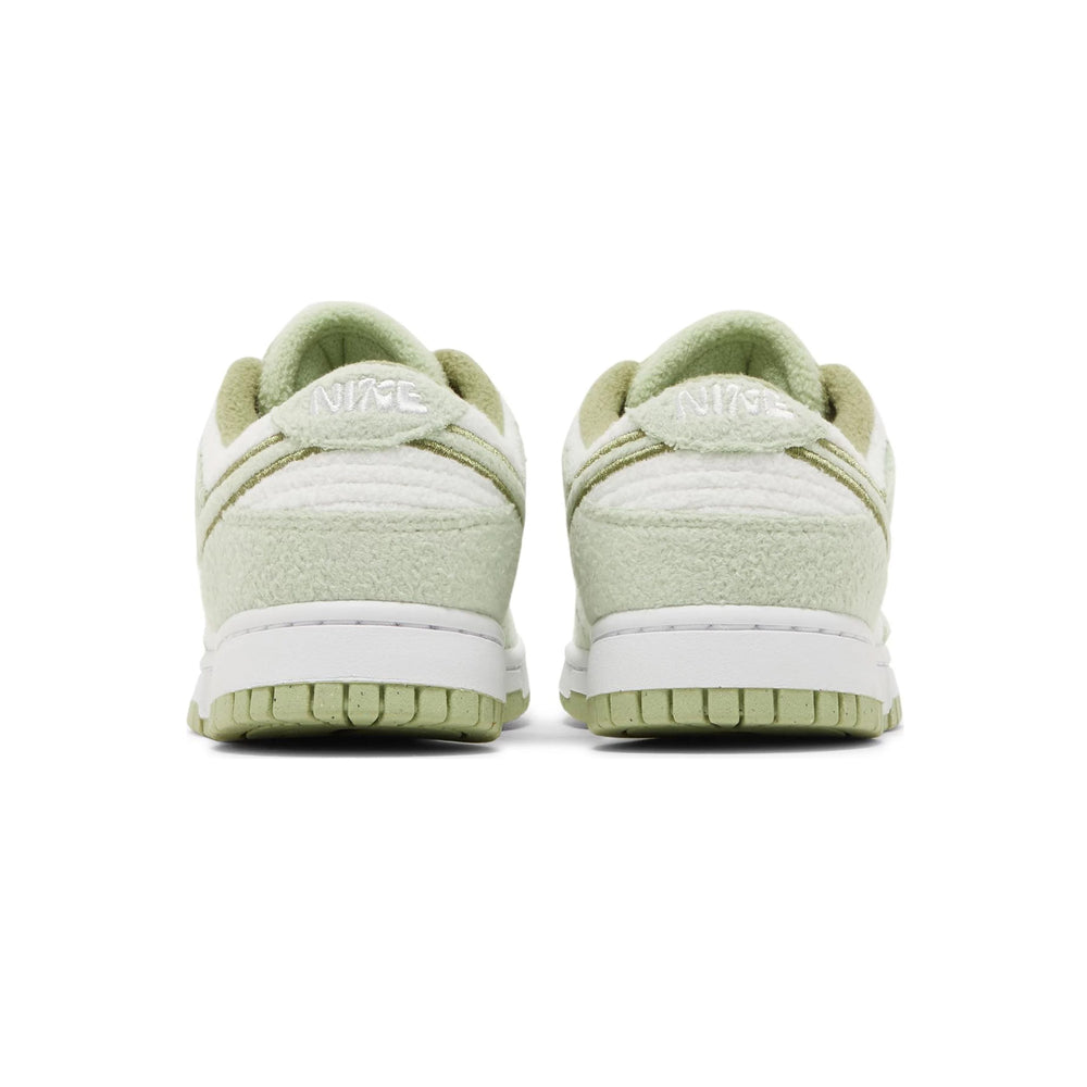 Crafted with a "Honeydew" fleece upper, the Nike Dunk Low SE exudes a cozy yet chic vibe, perfect for the cooler months. The soft fleece material is complemented by durable suede overlays in a matching hue, creating a harmonious and textured look. The Swoosh, a symbol of Nike's commitment to excellence, is rendered in white leather, providing a striking contrast that enhances the overall aesthetic. The white midsole and light gum rubber outsole not only add to the shoe's visual appeal but also ensure optimal traction and durability. Subtle branding elements, such as the embroidered Nike logo on the heel tab and the tongue tag, maintain the sneaker's clean and sophisticated design.
