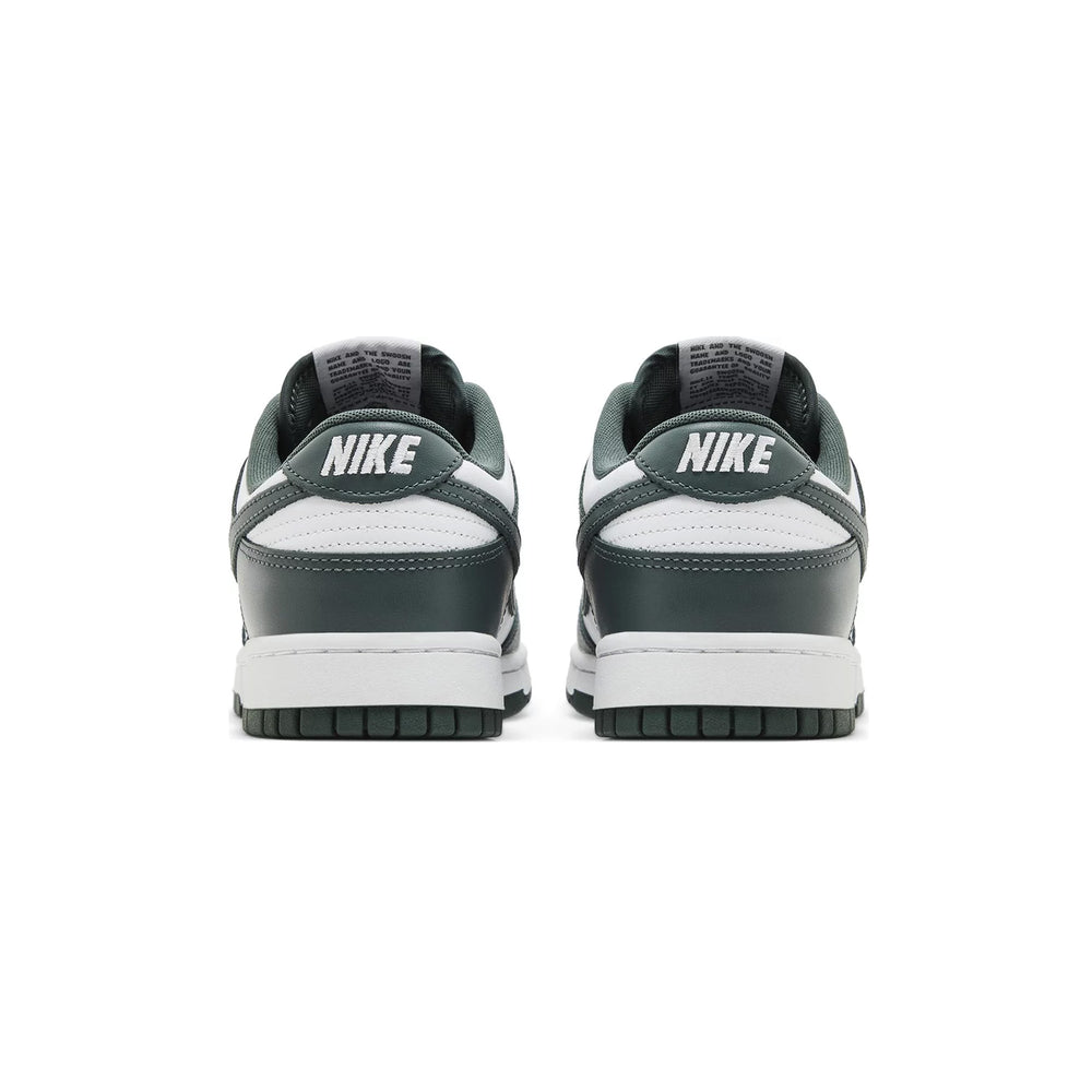 The Nike Dunk Low 'Vintage Green' stands out with a "Sail" leather base, offset by deep green overlays that evoke a retro aesthetic, reminiscent of Nike's early colorways. Crafted with premium materials, the sneaker combines a smooth leather upper with green accents on the mudguard, eyestays, and heel. The vintage look is enhanced by aged midsoles, while the outsole’s darker green finish adds a layer of contrast, grounding the design in classic simplicity. A crisp white midsole, coupled with traditional Nike branding on the tongue and heel, completes the look, making it a versatile addition to both casual and streetwear wardrobes. Embracing a minimalist yet impactful color scheme, this Dunk Low model is a must-have for collectors and everyday wearers alike.