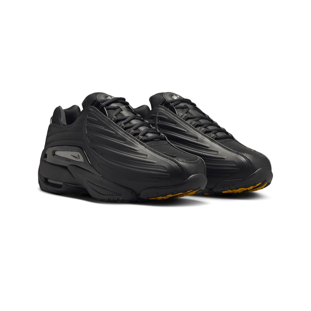 The Hot Step 2 NOCTA 'Black' features a predominantly black colorway, crafted with a combination of premium leather and suede for a sophisticated look. The shoe's clean lines and minimalistic design are accented by a reflective silver Swoosh and NOCTA branding on the heel and tongue, adding a touch of understated elegance. The midsole incorporates advanced cushioning technology for optimal comfort, while the outsole provides superior traction with a unique tread pattern. This sneaker’s design is inspired by the streamlined, contemporary aesthetics of NOCTA, ensuring it stands out both in style and functionality.
