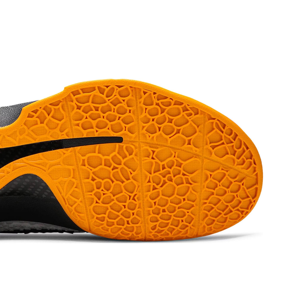 The Nike Kobe 6 Protro Playoff Pack 'White Del Sol' boasts a sleek "White" upper accented by striking "Del Sol" yellow details, creating a visually stunning contrast. The shoe's upper is constructed with a combination of synthetic materials and Flywire technology, offering lightweight support and a snug fit. The signature scaly texture of the upper, inspired by the mamba snake, remains intact, providing both aesthetic appeal and functional grip. Cushioning is redefined with the inclusion of a full-length Zoom Air unit and Phylon midsole, ensuring responsiveness and comfort during intense gameplay. The outsole features a modified herringbone pattern for exceptional traction on the court, making quick cuts and explosive movements effortless.