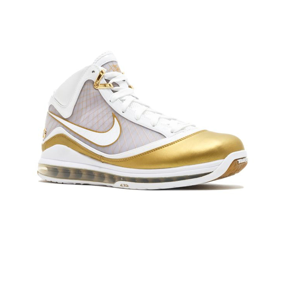 The Nike LeBron 7 'China Moon' (2009) stands as a testament to the merging of performance innovation and cultural homage, capturing the essence of basketball excellence while celebrating Chinese heritage. This iconic release exemplifies the LeBron 7 silhouette's reputation for delivering premium design and cutting-edge technology. Overview Debuting as part of the "China Moon" collection, the Nike LeBron 7 'China Moon' features a striking white and metallic gold colorway that symbolizes prosperity and celebration. Its upper showcases a combination of smooth patent leather and woven panels, creating a dynamic and luxurious aesthetic. The visible full-length Air Max cushioning delivers unmatched comfort and responsiveness on and off the court. Distinctive branding, including the "L23" logo and subtle Chinese characters, nods to the cultural inspiration behind the design. A translucent outsole and gold accents further elevate the sneaker's opulent look, making it a collector’s piece for both basketball and sneaker enthusiasts alike. Key Highlights • Cultural Homage to Chinese Heritage: The white and metallic gold palette, alongside Chinese characters, pays tribute to the Lunar New Year and symbolizes wealth and celebration. • Innovative Performance Technology: Equipped with full-length Air Max cushioning for unparalleled comfort and support during gameplay or casual wear. • Luxurious Material Construction: Features patent leather overlays and woven side panels, combining style and functionality for a premium look and feel.