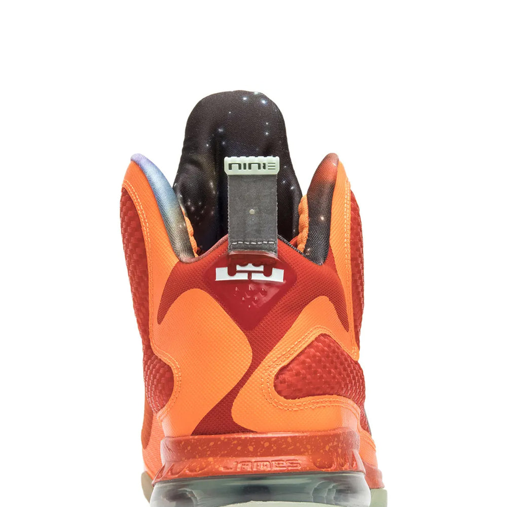 The Nike LeBron 9 'Big Bang AS' (2012) stands as one of the most celebrated releases in LeBron James' signature line, merging bold, cosmic-inspired aesthetics with top-tier basketball performance. Originally launched during the 2012 NBA All-Star Weekend in Orlando, this colorway pays homage to the wonders of outer space, making it an iconic addition to any sneaker collection. Overview The Nike LeBron 9 'Big Bang AS' showcases a striking "Total Orange" upper constructed from a mix of lightweight Hyperfuse and supportive Flywire technologies. This eye-catching hue is complemented by a speckled midsole and a glow-in-the-dark outsole that enhances its intergalactic theme. Adding to its celestial charm, the sneaker features a galaxy-print sockliner and tongue, alongside reflective 3M detailing on the Swooshes and heel tab. The iconic "King James" logo appears on the tongue, emphasizing the player’s legendary status. Released as part of Nike's 'Galaxy Pack,' this colorway remains a grail for sneaker enthusiasts and collectors alike. Key Highlights • Bold Cosmic Design: Features a "Total Orange" upper with galaxy-inspired graphics, glow-in-the-dark elements, and reflective 3M accents for a standout look. • Performance-Driven Construction: Equipped with Hyperfuse and Flywire technology, providing durability and support for both on-court and lifestyle use. • Iconic Galaxy Pack Release: Part of Nike's highly coveted 2012 'Galaxy Pack,' tying into the All-Star Weekend's space exploration theme and securing its place in sneaker history.