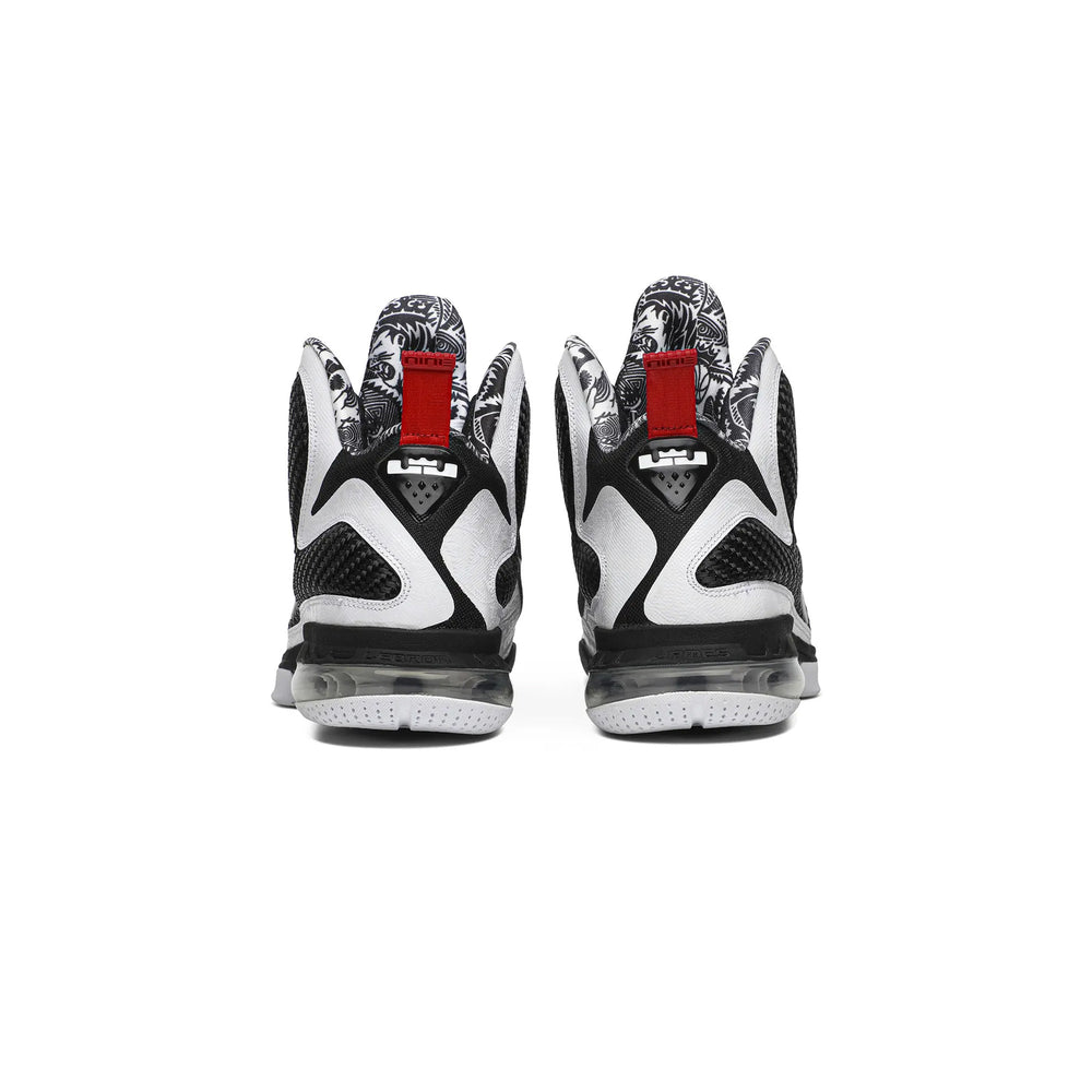 The Nike LeBron 9 'Freegums' (2011) is a bold and artistic entry in LeBron James’ iconic sneaker line, seamlessly blending performance innovation with striking visual storytelling. Designed in collaboration with Miami artist Alvaro "Freegums" Ilizarbe, this edition celebrates the city's vibrant culture and the artist's signature intricate patterns. Overview The Nike LeBron 9 'Freegums' features a unique black and white colorway, spotlighting Freegums' mesmerizing artwork across the inner lining and midsole trim. The sneaker's upper is constructed with a mix of hyperfuse and Flywire technologies, ensuring lightweight durability and superior lockdown fit. The intricate design reflects the dynamic spirit of Miami, showcasing Freegums' intricate line work that intertwines seamlessly with the shoe's high-performance DNA. A full-length Zoom Air unit in the forefoot and a Max Air 180 unit in the heel provide unmatched cushioning and responsiveness, making this sneaker a perfect blend of style and function. Key Highlights • Collaborative Artwork by Freegums: Features exclusive Miami-inspired illustrations by the renowned artist, creating a striking contrast in the black and white palette. • Advanced Nike Technologies: Includes hyperfuse construction and Flywire cables for enhanced support and durability without sacrificing lightweight comfort. • Elite Cushioning System: Combines a Zoom Air unit in the forefoot with a Max Air 180 unit in the heel for optimal shock absorption and responsiveness.