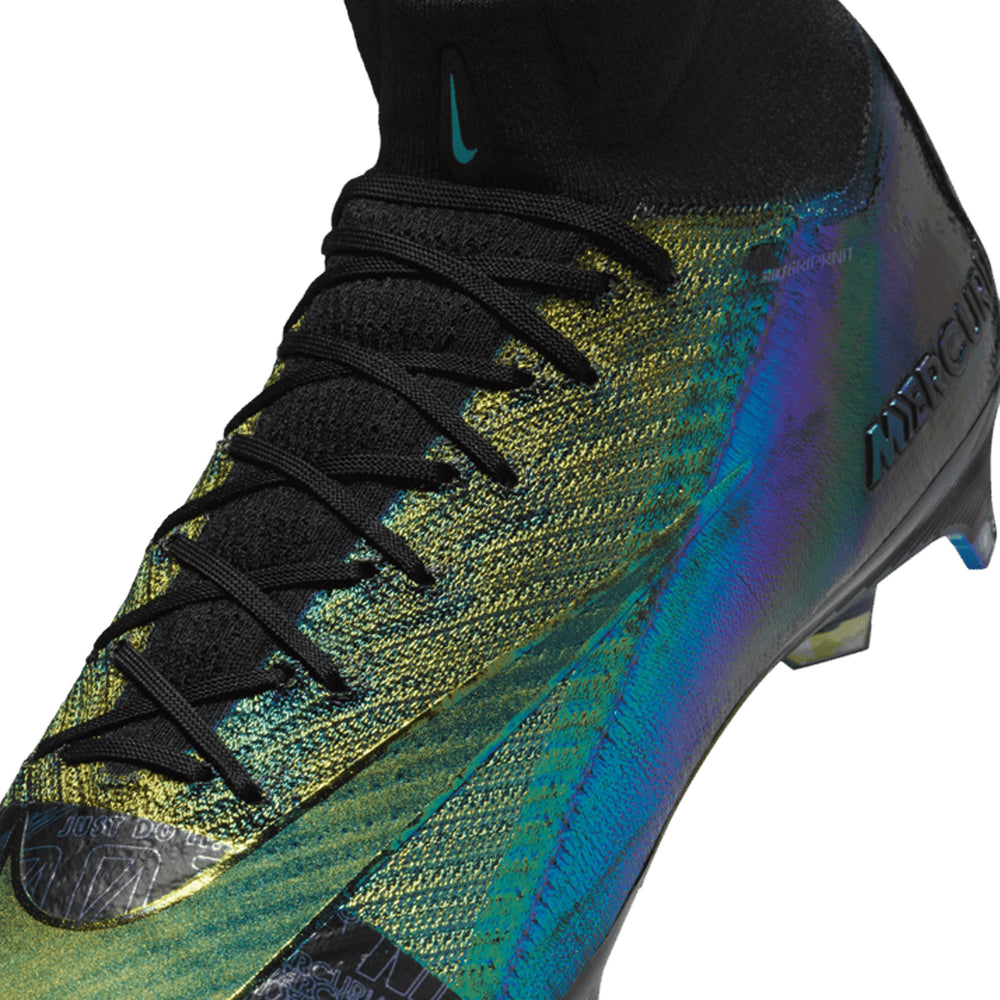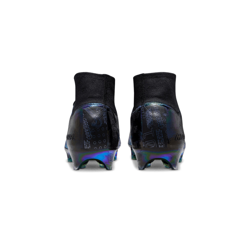 The Nike Mercurial Superfly 10 Elite FG 'Iridescent' features a Flyknit upper that molds seamlessly to the foot, offering a sock-like fit for ultimate comfort and stability. Nike’s All Conditions Control (ACC) technology ensures reliable touch and control in both wet and dry conditions, making it suitable for unpredictable weather. The cleat’s dynamic fit collar delivers additional ankle support, enhancing flexibility without compromising speed. Its iridescent finish gives the shoe an eye-catching, futuristic look, adding a layer of flair to its already high-performance design.