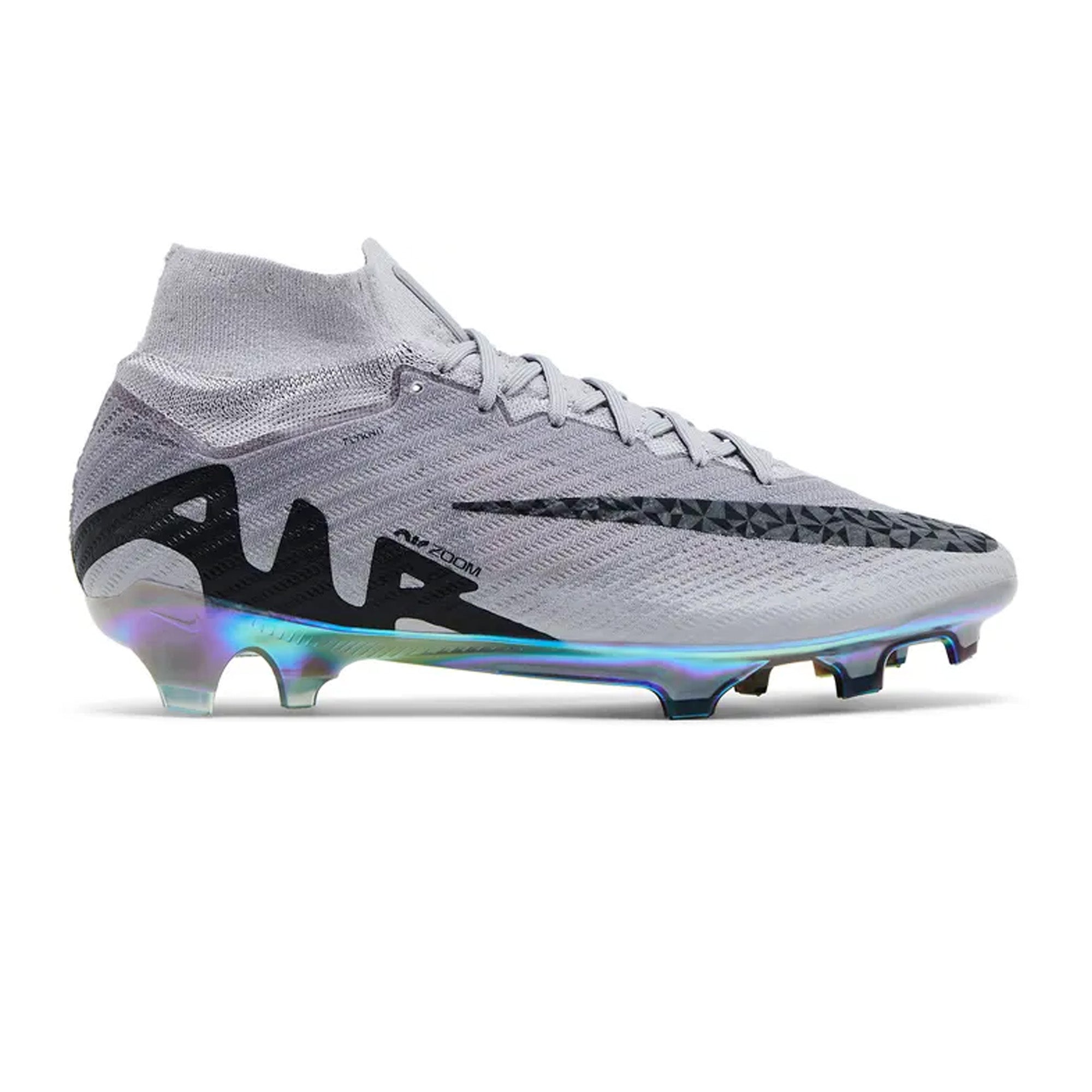 The Nike Mercurial Superfly 9 Elite AS FG High 'Rising Gem Pack' (2024) elevates elite football performance with a striking design inspired by the brilliance of precious gemstones. Designed for agility, speed, and precision on firm ground surfaces, this special edition Mercurial Superfly 9 embodies innovation while making a bold aesthetic statement. Overview Featuring a dynamic high-cut design, the 'Rising Gem Pack' iteration of the Mercurial Superfly 9 Elite AS FG boasts a shimmering iridescent upper, reminiscent of rare gemstones reflecting light from every angle. The Flyknit construction ensures a seamless, sock-like fit, while Nike’s advanced Vaporposite+ material enhances ball control with a textured grip. The lightweight Zoom Air unit in the soleplate provides responsive cushioning, enabling explosive speed on the pitch. Complemented by a specialized FG traction system, this boot optimizes acceleration and agility, making it an essential choice for top-tier athletes. Key Highlights • Exclusive 'Rising Gem Pack' Design – A dazzling iridescent finish inspired by the brilliance of precious stones, making it a standout on the field. • High-Cut Dynamic Fit Collar – Offers a secure, sock-like feel for enhanced stability and ankle support during high-speed movements. • Vaporposite+ Upper – Engineered with a textured surface to maximize ball control and precision, even at top speeds.