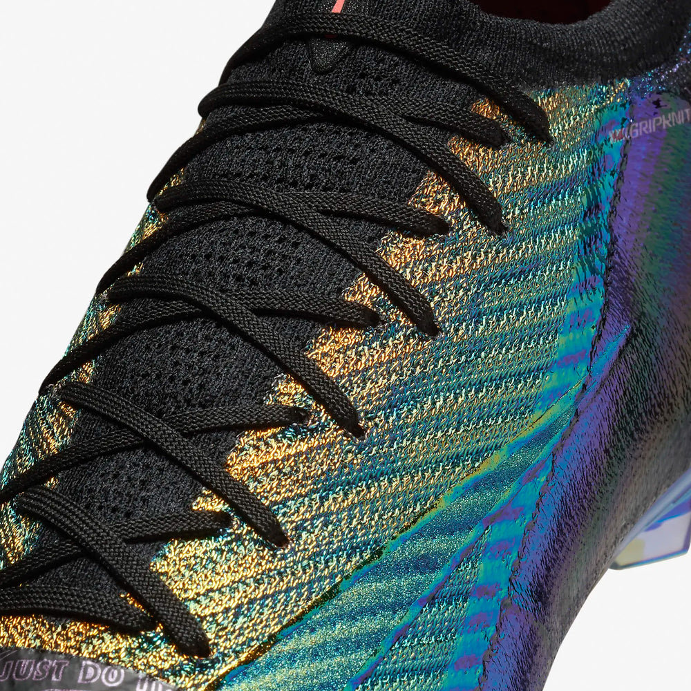 Crafted with a sleek, lightweight Flyknit upper, the Mercurial Vapor 16 Elite FG molds perfectly to the foot, delivering a snug, second-skin feel. The iridescent finish shimmers with a spectrum of colors as it catches the light, making the cleat visually distinctive on the field. Equipped with Nike’s Aerotrak Zone, the soleplate ensures explosive acceleration, while the chevron-shaped studs provide optimal grip for quick directional changes. A responsive insole cushioning and All Conditions Control (ACC) technology ensure superior touch and performance in both wet and dry conditions. The unique aesthetic and high-performance features make it a game-changer for players looking to elevate their play.